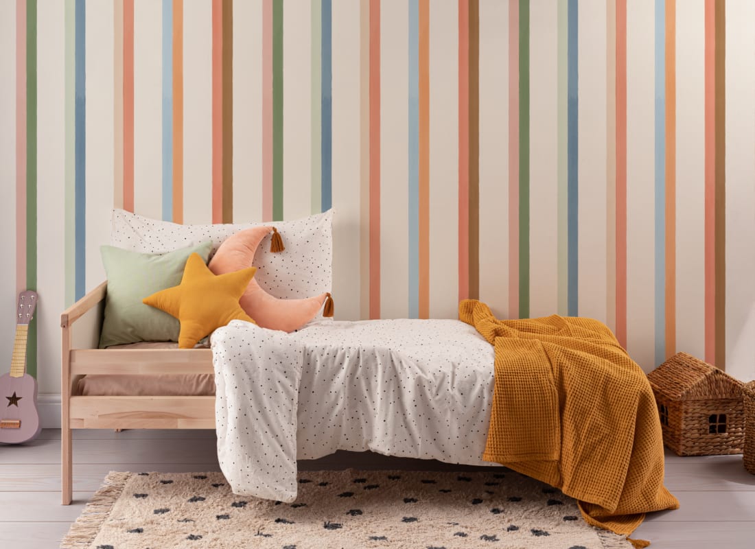 Mural Hovia Ezra ST5544MU07W prezentuje wyrazisty wzór pionowych pasów, ręcznie malowanych w zróżnicowanej gamie kolorystycznej obejmującej tony retro. Linia każdego paska ma organiczny, nieregularny charakter, który nadaje ścianie wrażenie ruchu i autentyczności. Połączenie ciepłych brązów, przygaszonych pomarańczy, błękitów, zieleni i moreli nadaje kompozycji nieformalnego, ale przemyślanego rytmu wizualnego. Mural Hovia ST5544MU07W Ezra doskonale komponuje się z drewnianym łóżkiem o prostej konstrukcji, bawełnianą pościelą w mikrowzory oraz dodatkami tekstylnymi w odcieniach musztardy i oliwki. W pokoju dziecięcym lub strefie relaksu wprowadzi energetyczną, lecz zrównoważoną atmosferę, która pobudza kreatywność i zapewnia przytulność. Dzięki silnemu efektowi pionowych linii projekt optycznie wydłuży przestrzeń i nada jej indywidualnego charakteru.