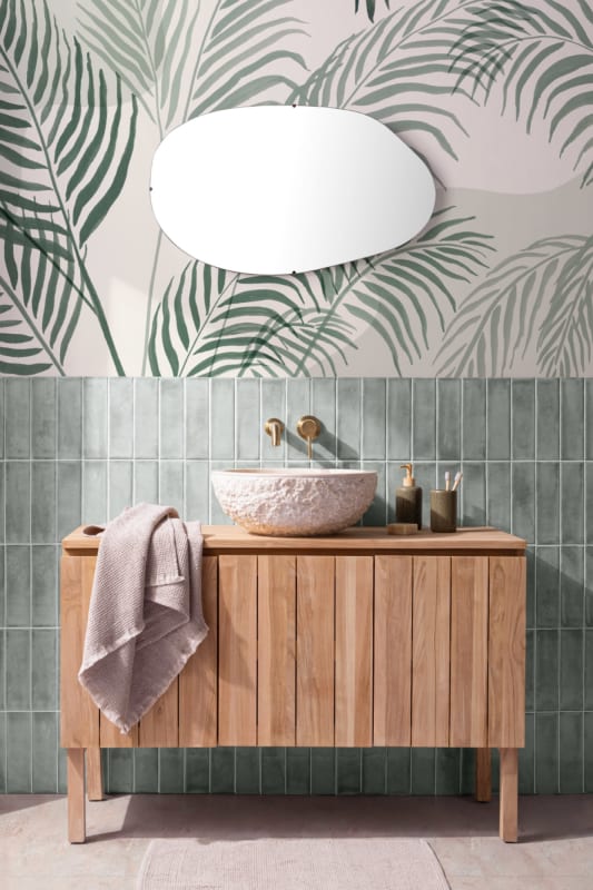 Mural Hovia Palmetto TR0040GR04W wprowadzi do wnętrza motyw roślinny w nowoczesnym wydaniu. Duże, ręcznie malowane liście palmowe w odcieniach szałwii i eukaliptusowej zieleni zostały osadzone na kremowym tle z subtelnym gradientem. Zastosowanie łagodnych przejść kolorystycznych i uproszczonych form nadaje dekoracji graficznej lekkości. Model ten tworzy spokojne, a zarazem wyraziste tło, dobrze komponujące się z naturalnymi materiałami, takimi jak juta, rattan czy jasne drewno. Dzięki zastosowaniu neutralnej, botanicznej palety barw mural Hovia TR0040GR04W Palmetto odnajduje się zarówno w nowoczesnych aranżacjach, jak i we wnętrzach inspirowanych stylistyką boho. Dobrze sprawdzi się w salonie, przedpokoju, domowym gabinecie lub sypialni, gdzie podkreśli atmosferę bliskości z naturą i wprowadzi wizualny spokój bez rezygnacji z dekoracyjnego akcentu.