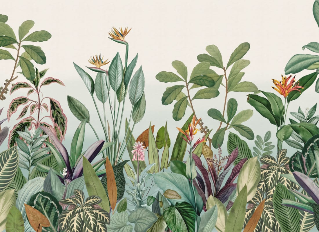Hovia TR0050BU03W Oasis Blue - mural w egzotyczne rośliny