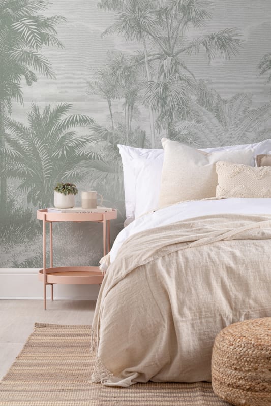 Mural Hovia Lacandon Green TR0063GR04W przyciąga wzrok bogactwem detali inspirowanych dawnymi rycinami przedstawiającymi tropikalną roślinność. Delikatna kreska i dwukolorowa paleta – szałwiowa zieleń połączona z kremowym tłem – nadają dekoracji ilustracyjnego charakteru. Każdy element zachowuje subtelność, a kompozycja oddaje wrażenie głębi dzięki precyzyjnemu cieniowaniu i zachowaniu naturalnych proporcji. Mural Hovia Lacandon Green TR0063GR04W pasuje do wnętrz, w których stawia się na organiczne formy i spokój barw – doskonale współgra z meblami z jasnego drewna, plecionkami oraz neutralnymi tekstyliami. Zastosowany w salonie, jadalni, sypialni lub pokoju dziecięcym wprowadzi atmosferę spokoju i lekkości. Otworzy przestrzeń optycznie, doda jej głębi oraz wyciszającego klimatu inspirowanego naturą.