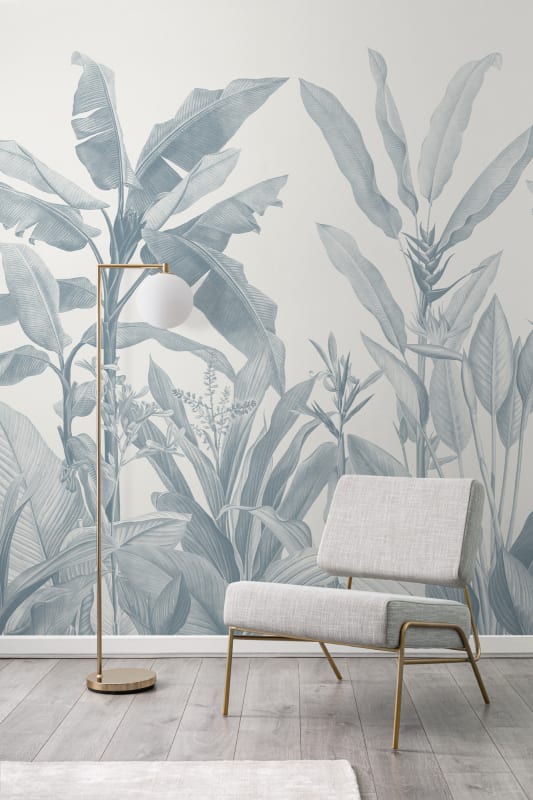Mural Hovia Redouté Blue TR0364BU04W prezentuje tropikalną florę w zredukowanej, wyciszonej kolorystyce, która podkreśla ilustracyjny charakter kompozycji. Liście bananowca, strelicji i egzotycznych traw zostały narysowane z niezwykłą precyzją i zachowaniem botanicznej poprawności, a ich chłodna, przygaszona tonacja oparta na stalowym błękicie harmonizuje z jasnym tłem. Dekoracja czerpie z klasycznej estetyki rycin Pierre’a-Josepha Redouté, jednak wybrzmiewa w duchu nowoczesnego minimalizmu. Subtelna tekstura powierzchni przywodzi na myśl papier czerpany, co wzbogaca model o głębię i rysunkową szlachetność. Model Hovia TR0364BU04W Redouté Blue doskonale współgra z naturalnymi materiałami, takimi jak jasne drewno, len czy ceramika o surowym wykończeniu. Wniesie do wnętrza spokojny rytm i optyczną lekkość, otwierając przestrzeń na światło i organiczne proporcje.