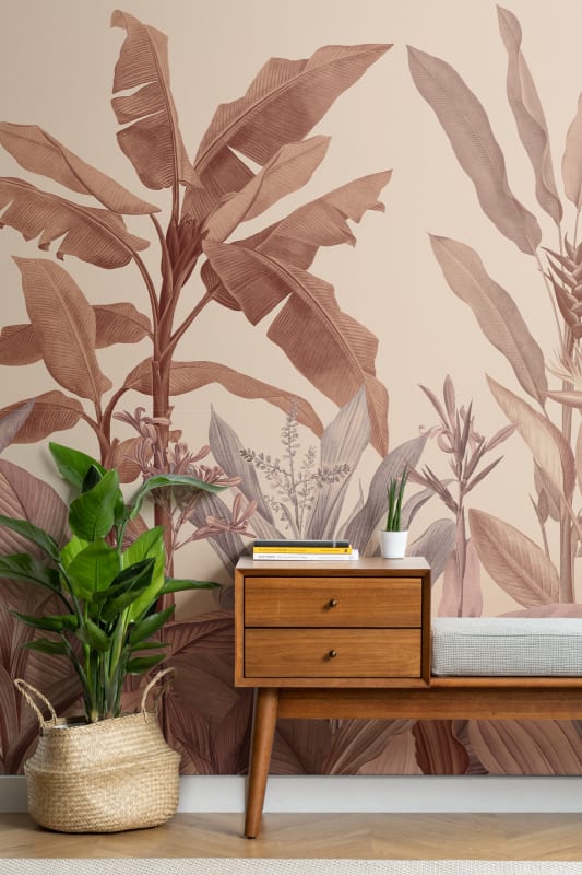 Mural Hovia Redouté Terracotta TR0367OR04W ukazuje egzotyczną roślinność w odcieniach głębokiej, ziemistej terakoty, tworząc wyważoną kompozycję inspirowaną klasycznymi ilustracjami botanicznymi. Rysunkowa precyzja liści bananowca i tropikalnych gatunków wpisuje się w stylistykę Pierre’a-Josepha Redouté, a miękkie przejścia tonalne podkreślają szlachetność detali. Tło w kolorze ciepłego piaskowca ociepli przestrzeń i pozwala roślinom wybrzmieć z elegancką miękkością. Subtelna faktura przypominająca papier wzbogaca produkt o wrażenie głębi i rękodzielniczego kunsztu. Model Hovia TR0367OR04W Redouté Terracotta odnajdzie się zarówno w aranżacjach vintage, jak i w nowoczesnych wnętrzach opartych na naturalnych materiałach – drewnie, lnie, surowej ceramice. Wniesie do wnętrza przytulność o artystycznym charakterze, podkreślając ciepłą kolorystykę i organiczny rytm kompozycji.