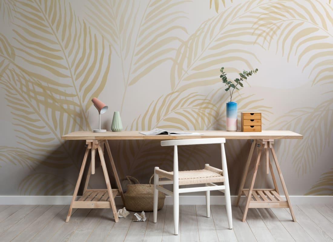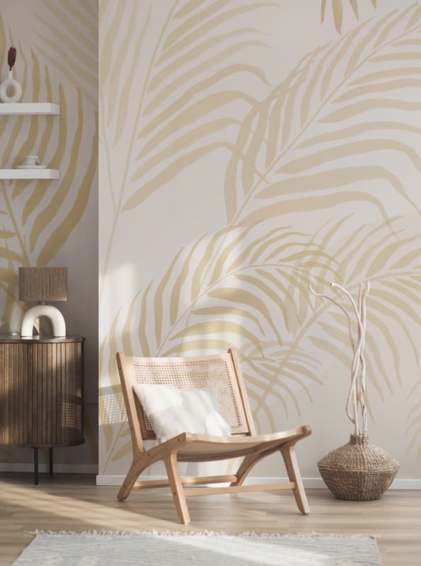 Mural Hovia Palmetto Yellow TR0611YE04W prezentuje motyw palmowych liści w odświeżonym, pastelowym wydaniu. Zastosowana kolorystyka opiera się na pudrowym różu, który w połączeniu z kremowym tłem i łagodnymi gradientami buduje spokojną, przyjazną kompozycję. Wzór oparty na ręcznie malowanych konturach liści palm tworzy delikatną strukturę dekoracyjną, która świetnie sprawdza się w nowoczesnych, jasnych wnętrzach. Mural dobrze komponuje się z meblami w odcieniach naturalnego drewna, bielą oraz elementami rattanowymi i tekstyliami w tonacjach ziemi. Mural Hovia TR0611YE04W Palmetto Yellow doskonale odnajduje się w przestrzeniach takich jak sypialnia, domowe biuro, pokój dziecięcy czy strefa wypoczynkowa, gdzie subtelnie ożywi aranżację i wprowadzi lekki, tropikalny klimat bez nadmiaru detali.