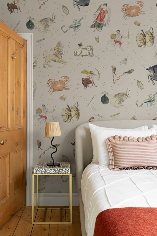 Mural Hovia Astrology Beige VT5493BE03W przedstawia klasyczne ilustracje znaków zodiaku i mitologicznych postaci, rozmieszczone wśród drobnych, złotych gwiazd. Kompozycja utrzymana w beżowej tonacji podkreśla elegancję i ponadczasowy charakter wzoru. Rysunki stylizowane na XIX-wieczne ryciny wprowadzają wizualną narrację, która przyciąga wzrok i inspiruje. Jasna kolorystyka tła wzmacnia poczucie przestronności i jednocześnie tworzy kojące tło. Dekoracja Hovia VT5493BE03W Astrology Beige sprawdzi się w pokojach dziecięcych, kreatywnych gabinetach oraz sypialniach w stylu mid century modern lub scandi-boho. Odcienie piasku i subtelne kontury tworzą atmosferę kontemplacji, przy jednoczesnym zachowaniu ilustracyjnej lekkości. Mural pozwala wprowadzić temat astrologii w sposób wysmakowany i nowoczesny, łącząc symbolikę nieba z przyjazną estetyką wnętrz.