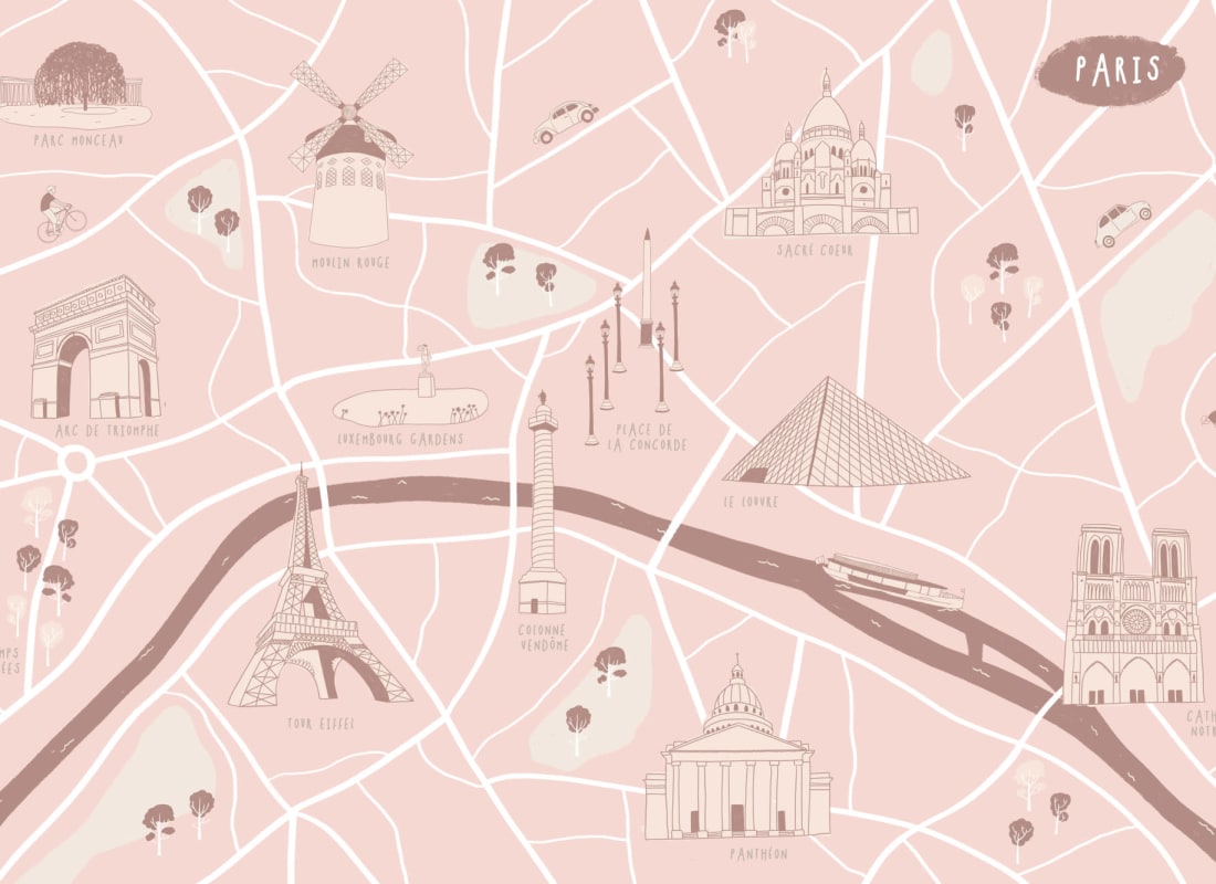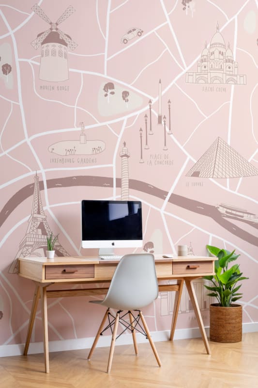 Mural Hovia Wander Paris WM0041PI05W przedstawia uproszczoną mapę Paryża z zaznaczeniem najważniejszych zabytków i punktów orientacyjnych. Stylizowane ilustracje takich obiektów jak Wieża Eiffla, Sacré-Cœur, Luwr czy Moulin Rouge rozmieszczono na siatce ulic w sposób swobodny, lecz czytelny. Projekt oparty na płaskiej grafice bazuje na różach, kremach i pastelach, które wprowadzają lekkość i optyczną miękkość. Mural Hovia WM0041PI05W Wander Paris doskonale wpisuje się w stylistykę nowoczesnych pokoi dziecięcych, przestrzeni edukacyjnych i stref relaksu. Dzięki delikatnej kolorystyce łatwo łączy się z meblami z jasnego drewna, dodatkami z rattanu oraz tkaninami w naturalnych tonacjach. To estetyczna interpretacja miejskiej topografii, która pełni funkcję zarówno dekoracyjną, jak i edukacyjną, wzbogacając wnętrze o element graficzny inspirowany europejskim dziedzictwem kulturowym.