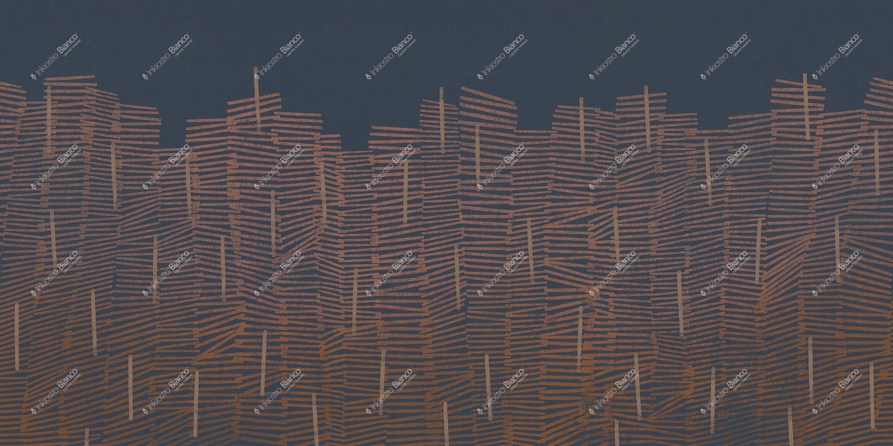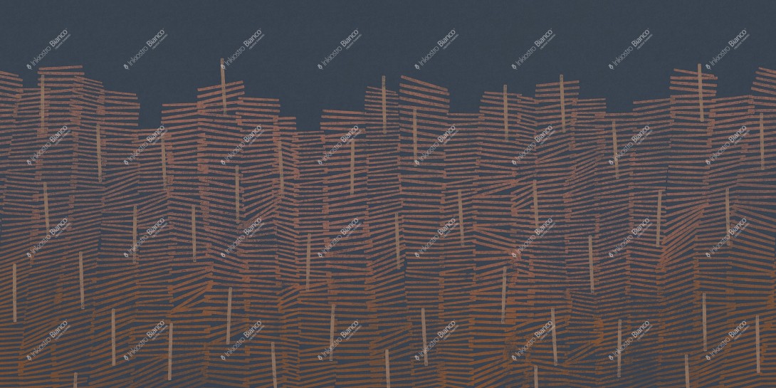 Mural Inkiostro Bianco INKCCUK2502 Monochrome Simplicity tworzy wielowarstwową strukturę zbudowaną z poziomych, nieregularnych linii o wyraźnie ręcznym charakterze. Każdy segment przypomina spontaniczny ruch pędzla, który buduje rytmiczną, lecz niejednorodną siatkę form. Kompozycja przywołuje skojarzenia z układanymi warstwami desek, gęstym splotem surowej tkaniny lub architektonicznym szkicem miejskiej zabudowy. Wzór emanuje energią i ruchem, a jego graficzna dynamika przełamuje monotonię, nie tracąc przy tym klarowności. Mural Inkiostro Bianco Monochrome INKCCUK2502 Simplicity doskonale współgra z nowoczesnymi materiałami i oszczędną kolorystyką, stanowiąc spójną, ale nieoczywistą bazę dla architektury zorientowanej na detal i strukturę.