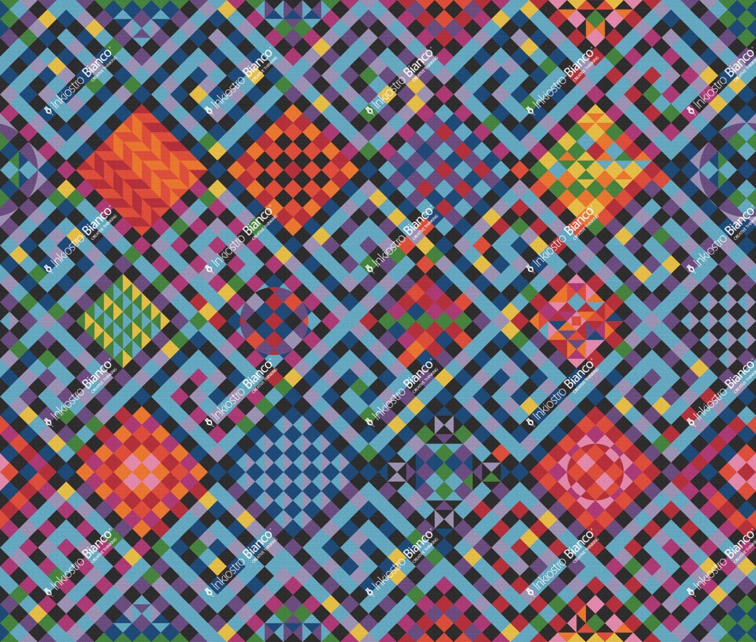 Mural Inkiostro Bianco Ken Scott Unconventional INKEISO2401 Coriopolis to niezwykła gra geometrycznych kształtów, pełna energii i dynamiki. Wzór, oparty na kalejdoskopowym układzie wielokolorowych kwadracików, tworzy hipnotyzującą kompozycję, która angażuje wzrok i wprowadza element optycznej iluzji. Nasycone barwy splatają się, tworząc złożone struktury, które zdają się pulsować na ścianie. Geometryczne figury, ułożone w precyzyjny sposób, tworzą zarówno rytmiczne, jak i asymetryczne układy, które mogą stać się centralnym punktem każdego pomieszczenia. Efekt jest zarówno nowoczesny, jak i wyrazisty, co wprowadza do wnętrza odważną estetykę wywołującą wrażenie ruchu. Mural Inkiostro Bianco INKEISO2401 Ken Scott Unconventional Coriopolis jest prawdziwym dziełem sztuki, które odzwierciedla ducha niekonwencjonalności i radości z eksperymentowania formą.