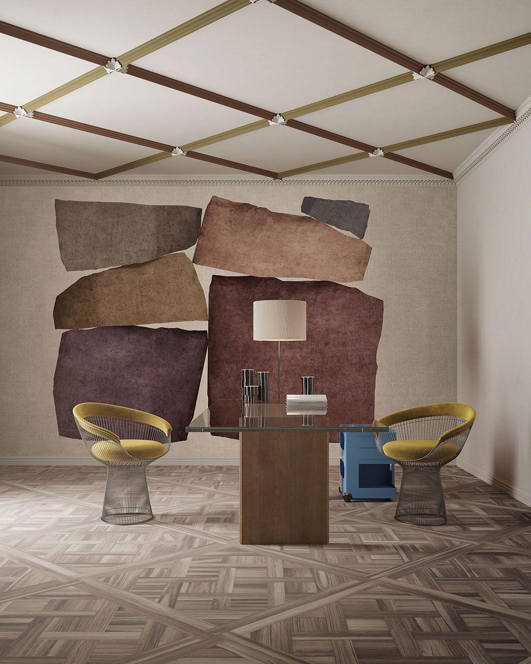 Mural Inkiostro Bianco INKITTI2502 Monochrome Subterranea opiera się na wielowarstwowej strukturze inspirowanej naturalnym procesem odkrywania głębokich warstw ziemi i materiału. Nieregularne formy przywołują skojarzenia z poszarpanymi fragmentami kamienia, surowej tkaniny lub sprasowanego papieru, tworząc dynamiczną, ale przemyślaną kompozycję. Odcienie beżu, terakoty, rdzy i złamanych szarości budują subtelny, ziemisty rytm barw, który pulsuje naturalną energią. Powierzchnia muralu zyskuje dodatkową głębię dzięki zróżnicowanemu cieniowaniu i teksturze, która nadaje jej niemal rzeźbiarskiego charakteru. Mural Inkiostro Bianco INKITTI2502 Monochrome Subterranea doskonale odnajduje się w nowoczesnych przestrzeniach, gdzie liczy się autentyczność materiału, wyciszona ekspresja i świadome użycie formy. Projekt emanuje szlachetnym spokojem, jednocześnie wprowadzając do wnętrza artystyczny akcent o wyrafinowanym, organicznym wymiarze.