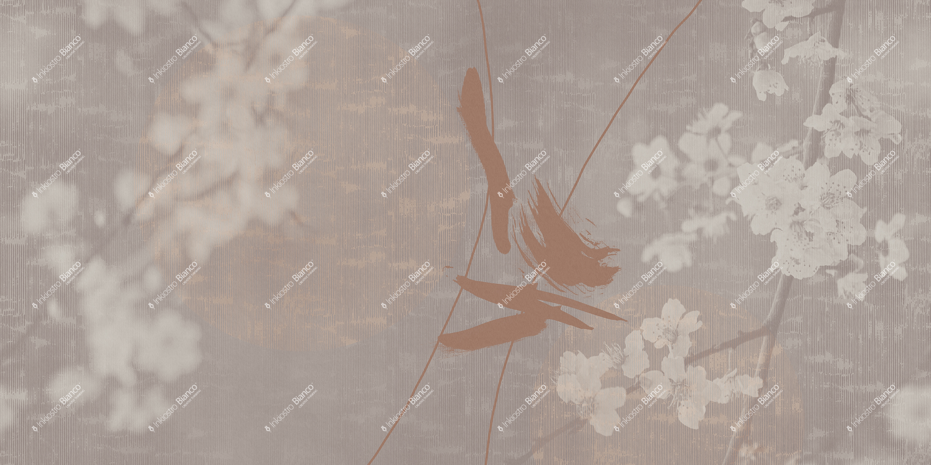 Mural Inkiostro Bianco Flamenco Yukata INKLACA2503 interpretuje motyw natury w sposób wyciszony i kontemplacyjny, inspirowany estetyką japońskiego minimalizmu. Kompozycja opiera się na delikatnych gałęziach wiśni, które wyłaniają się z rozmytego tła i sprawiają wrażenie zawieszonych w powietrzu. Zróżnicowanie ostrości poszczególnych planów buduje głębię oraz nadaje ścianie malarską lekkość, charakterystyczną dla tradycyjnych technik tuszu i akwareli. Tło z subtelną, pionową strukturą przywodzi na myśl postarzone płótno lub mineralną powierzchnię, co wzmacnia wrażenie spokoju i naturalnej niedoskonałości. Abstrakcyjne formy obecne w tle porządkują rytm kompozycji i równoważą organiczny rysunek kwiatów. Mural Inkiostro Bianco INKLACA2503 Flamenco Yukata w kwitnącą wiśnię harmonijnie wpisuje się w stylistykę japandi oraz nowoczesne wnętrza inspirowane Wschodem, gdzie ściana pełni rolę tła budującego atmosferę ciszy, skupienia i ponadczasowej elegancji.