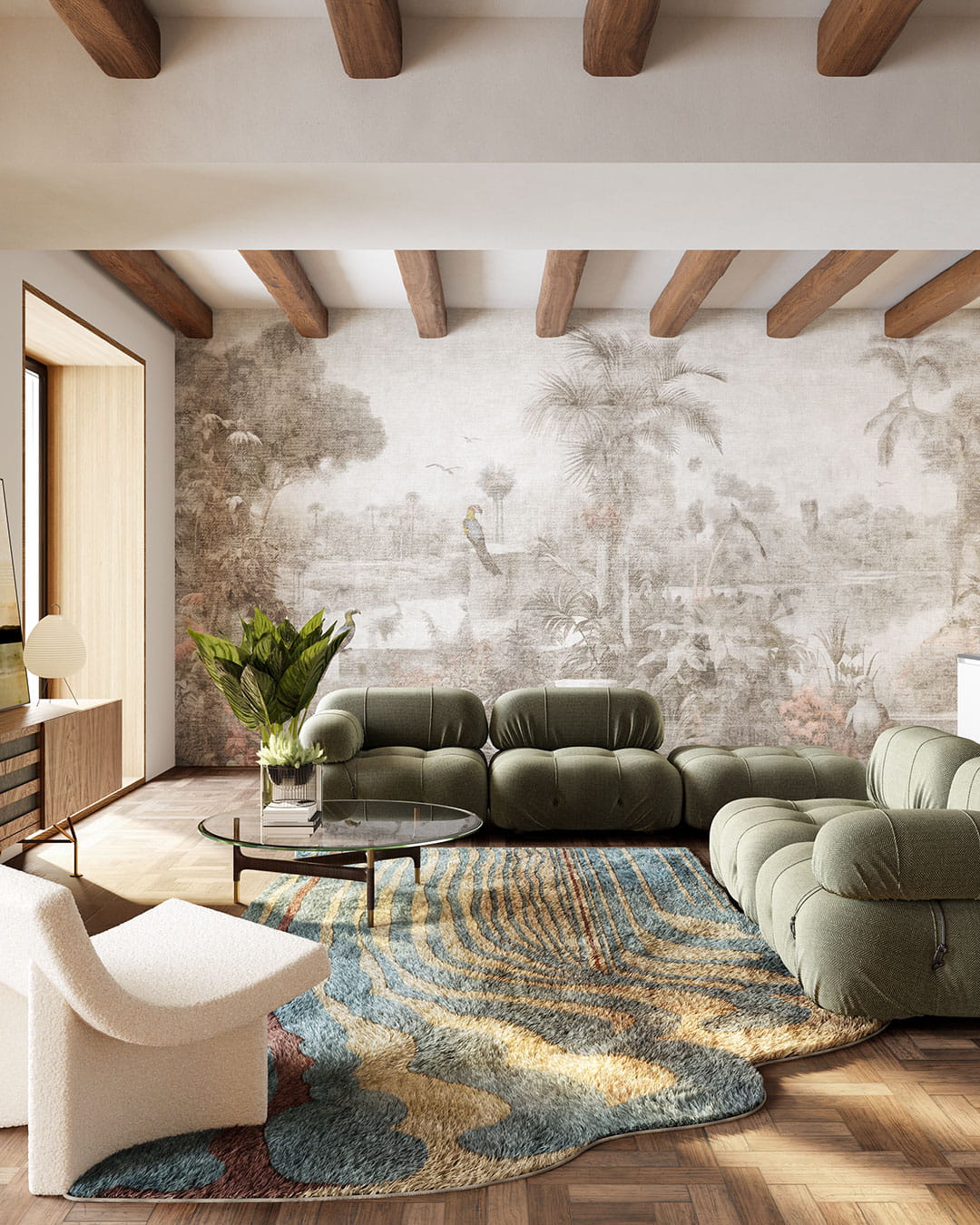 Mural Inkiostro Bianco White Paper Greige INKLBON2401 to wyjątkowa dekoracja, która wprowadza do wnętrz atmosferę spokoju i harmonii. Ukazuje subtelny krajobraz z drzewami i rzeką, tworząc idylliczną scenę pełną naturalnego piękna. Tego typu widoki nie tylko ozdobią ściany, ale również pozytywnie wpłyną na nastrój danego miejsca - ułatwią odprężenie po długim dniu wrażeń. Mural Inkiostro Bianco INKLBON2401 White Paper Greige doskonale współgra z meblami o prostych kształtach i dodatkami wykonanymi z naturalnych materiałów, takich jak drewno, wełna czy len. Połączenie go z neutralnymi kolorami pomoże stworzyć spójną i harmonijną przestrzeń. Aby podkreślić jego urok, warto dodać rośliny doniczkowe, które ożywią wnętrze i dodadzą mu świeżości. Dekoracja jest znakomitym wyborem dla miejsc urządzonych w stylu rustykalnym, skandynawskim czy klasycznym. Dużą zaletą tego produktu jest to, że to od Ciebie zależy, jakie praktyczne cechy ma on mieć. Dostępne są 4 rodzaje materiału - trwały winyl, włókno szklane, które zapewnia wodoodporność, piękne, teksturalne tworzywo oraz podświetlana opcja. Taka różnorodność sprawia, że dekoracja w 100% dopasuje się do Twoich potrzeb.