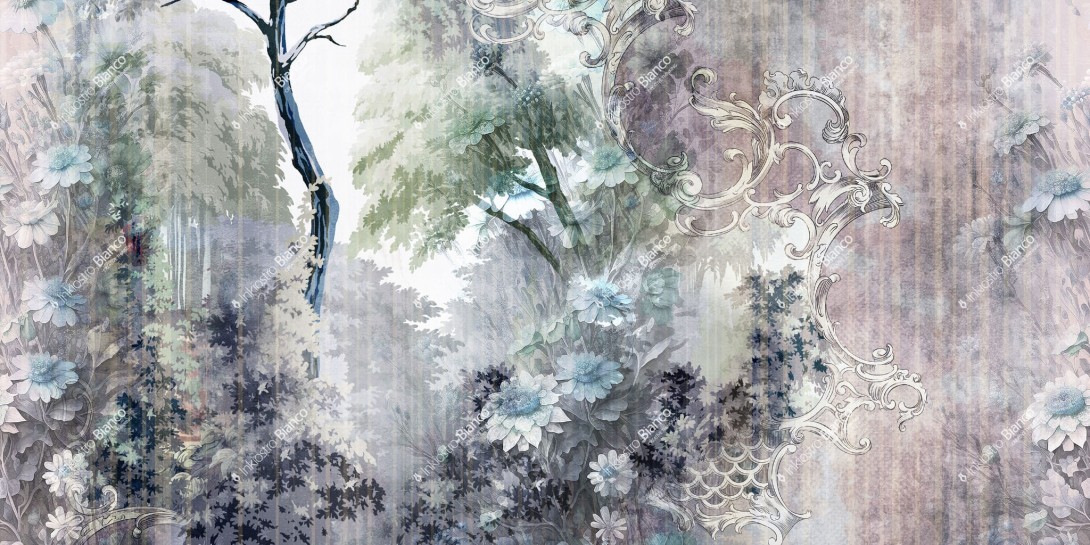 Inkiostro Bianco INKLIKO2301_B Flow Gaudy - mural z motywem pawia, lasu, kwiatów i ornamentów