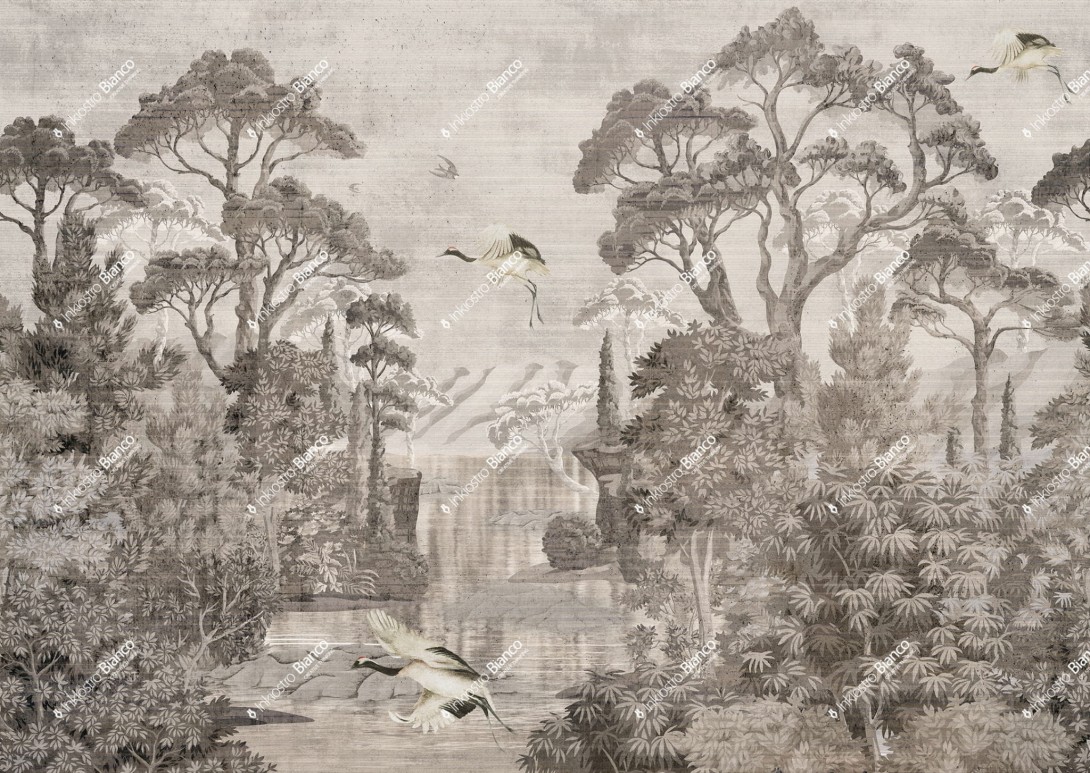 Inkiostro Bianco INKNALA2401 White Paper Laguna - mural w roślinny krajobraz
