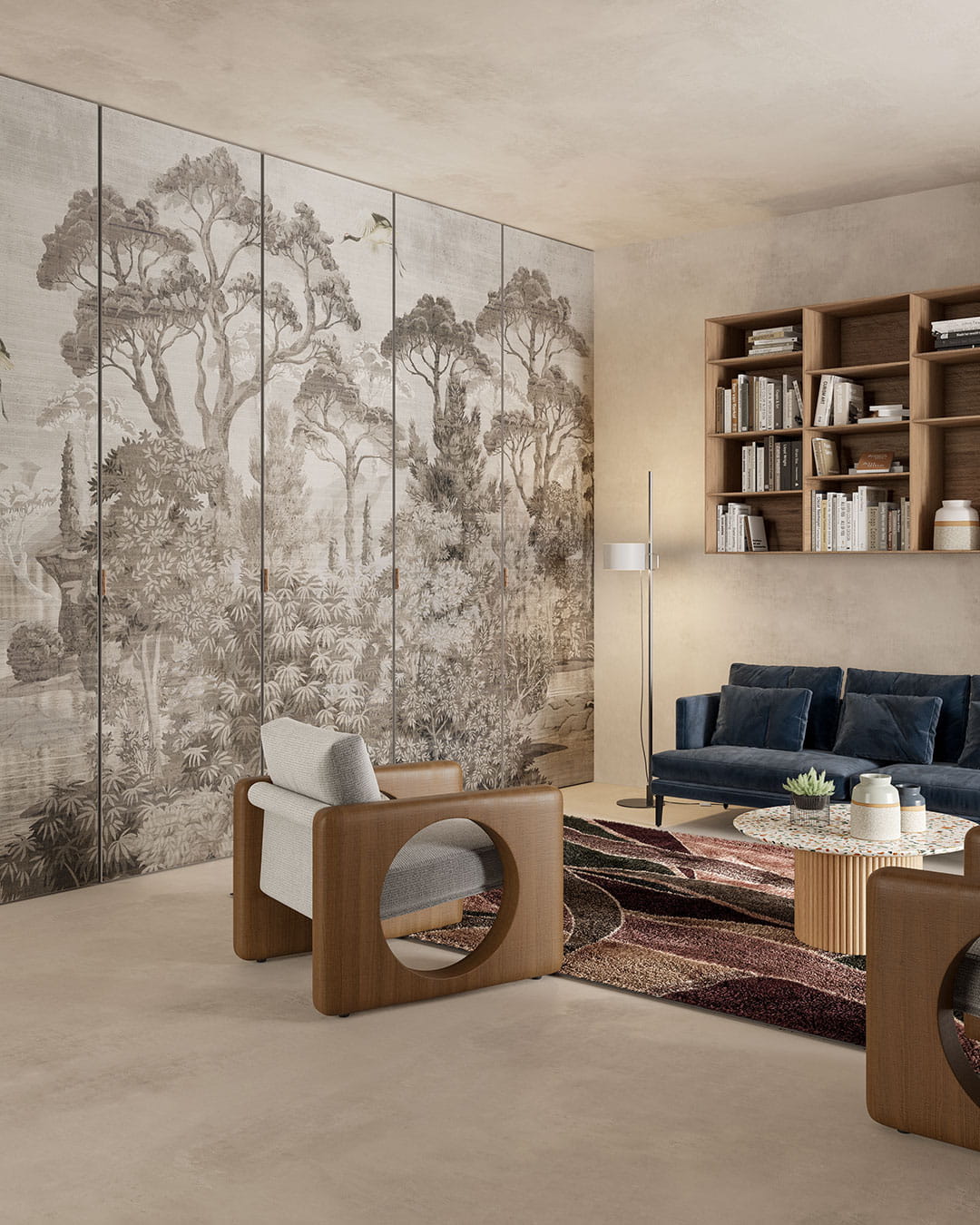 Mural Inkiostro Bianco White Paper Laguna INKNALA2402 to niezwykły element dekoracyjny, który wprowadza do wnętrza atmosferę spokoju i harmonii. Prezentuje delikatny, roślinny krajobraz z drzewami, rzeką i zwierzętami, tworząc sielankową scenę, która emanuje naturalnym pięknem. Tego rodzaju pejzaże nie tylko ozdabiają ściany, ale wpływają również pozytywnie na samopoczucie. Mural Inkiostro Bianco White Paper Laguna INKNALA2402 dobrze skomponuje się z meblami o prostych liniach i dodatkami z naturalnych materiałów, takich jak drewno, rattan czy len. W połączeniu z neutralnymi kolorami stworzy spójną i harmonijną przestrzeń. Aby podkreślić jego urok, warto dodać rośliny doniczkowe, które ożywią wnętrze i dodadzą mu świeżości. Mural ten jest idealnym rozwiązaniem dla wnętrz w stylu rustykalnym, gdzie naturalne elementy i przytulne akcenty tworzą ciepłą atmosferę. Równie dobrze sprawdzi się w aranżacjach skandynawskich, gdzie prostota i funkcjonalność spotykają się z estetyką inspirowaną naturą. W nowoczesnych, minimalistycznych przestrzeniach dekoracja może stać się centralnym punktem, który zwraca na siebie uwagę, ale nie przytłacza. Dostępne są 4 warianty tego modelu: winylowy, z włókna szklanego, teksturalny oraz podświetlany.