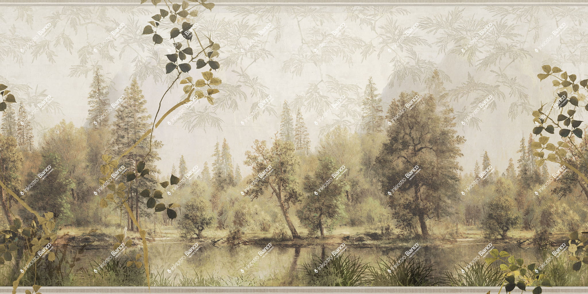 Inkiostro Bianco INKOAOA2402 White Paper Incantatus Lacus - mural w roślinny krajobraz