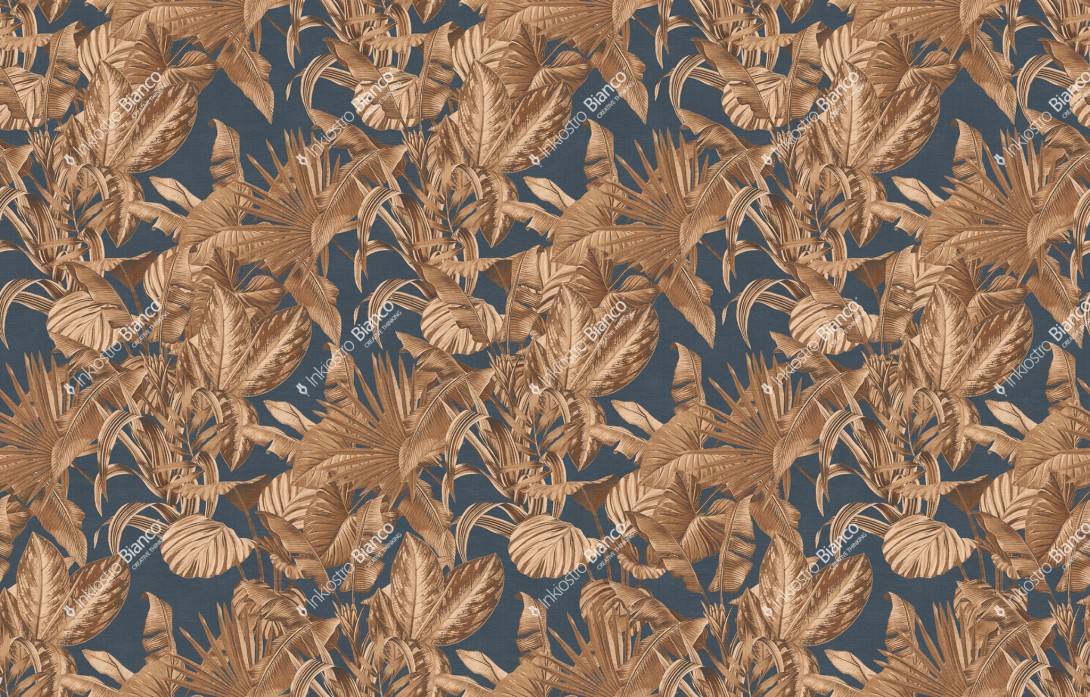 Inkiostro Bianco INKOTRO2301 Flow Volver - mural z motywem liści na jednolitym tle