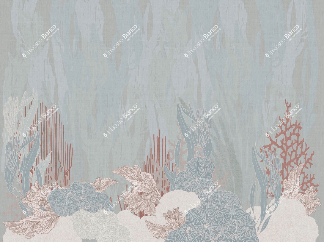 Inkiostro Bianco INKRRIA2301 Flow Marine Sound - mural z motywem liści i wodorostów na lnianym tle