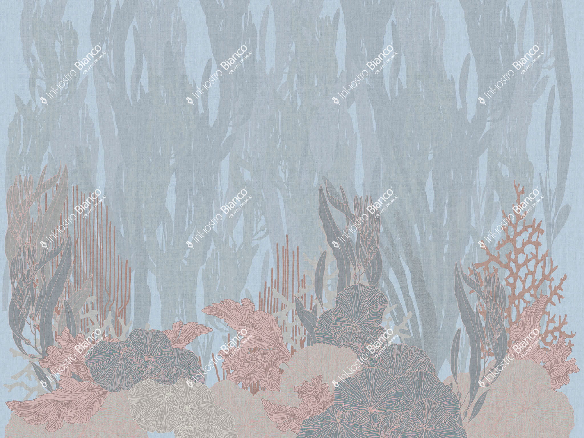Inkiostro Bianco INKRRIA2301 Flow Marine Sound - mural z motywem liści i wodorostów na lnianym tle