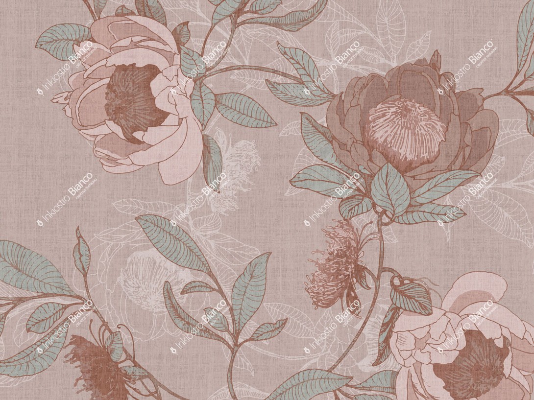 Inkiostro Bianco INKTANH2302 Flow Floral Rhythm - mural z motywem kwiatów na lnianym tle