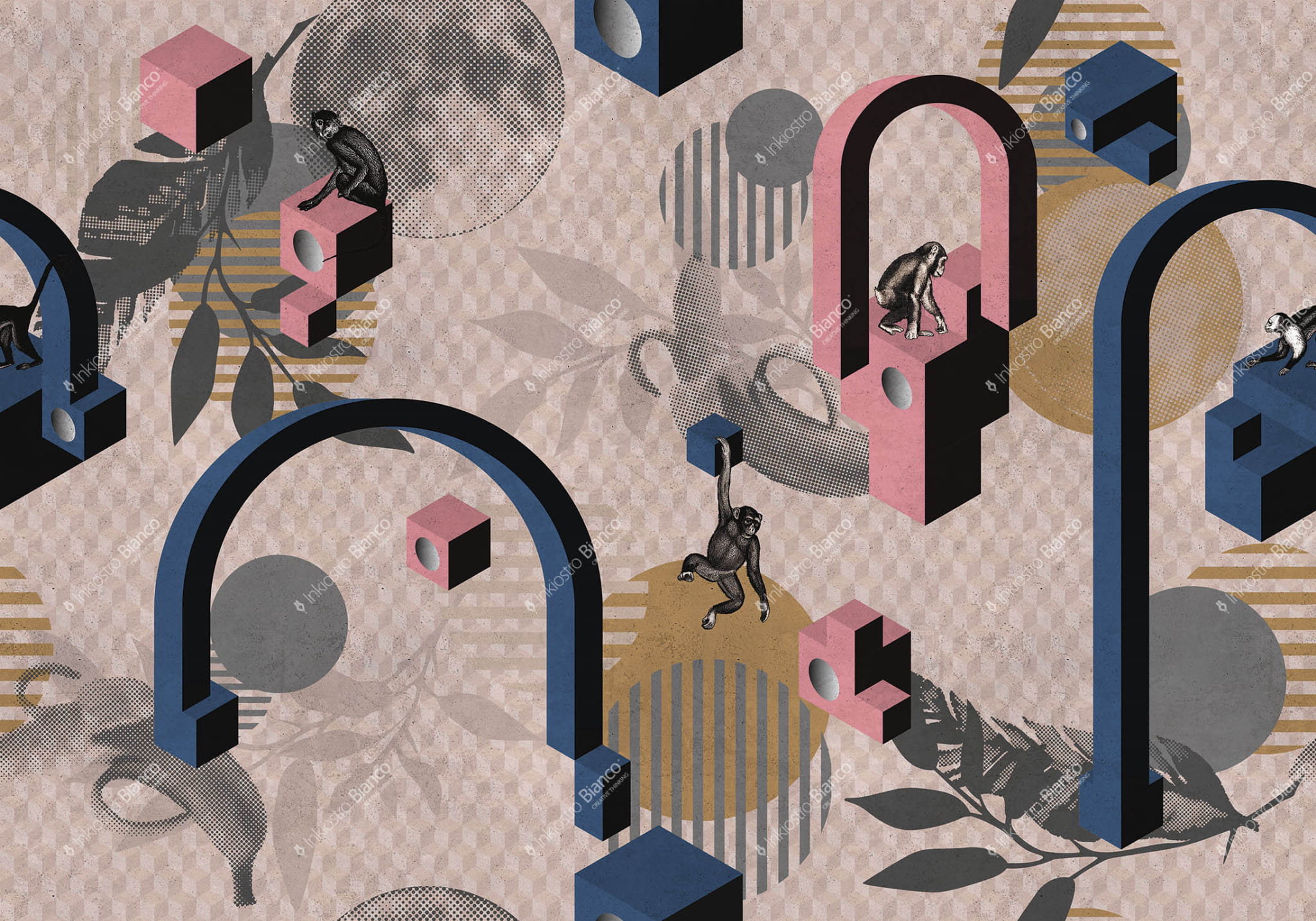 Mural Inkiostro Bianco Natural Beauty Planet Of The Apes INKTNOJ1901 przedstawia ciekawskie małpy, bawiące się pośród rozmaitych figur geometrycznych. To atawistyczny system grafizmów, które można dostrzec w naturalnych elementach, z których wywodzą się bardziej złożone formy i wyrażenia. Mural Inkiostro Bianco Natural Beauty Planet Of The Apes INKTNOJ1901 to piękny sposób na udekorowanie Twojego wnętrza. Wzór doskonale sprawdzi się w każdej aranżacji i sprawi, że miejsce nabierze nowoczesnego, eleganckiego i niepowtarzalnego charakteru. Model dostępny jest w dwóch wersjach kolorystycznych.
