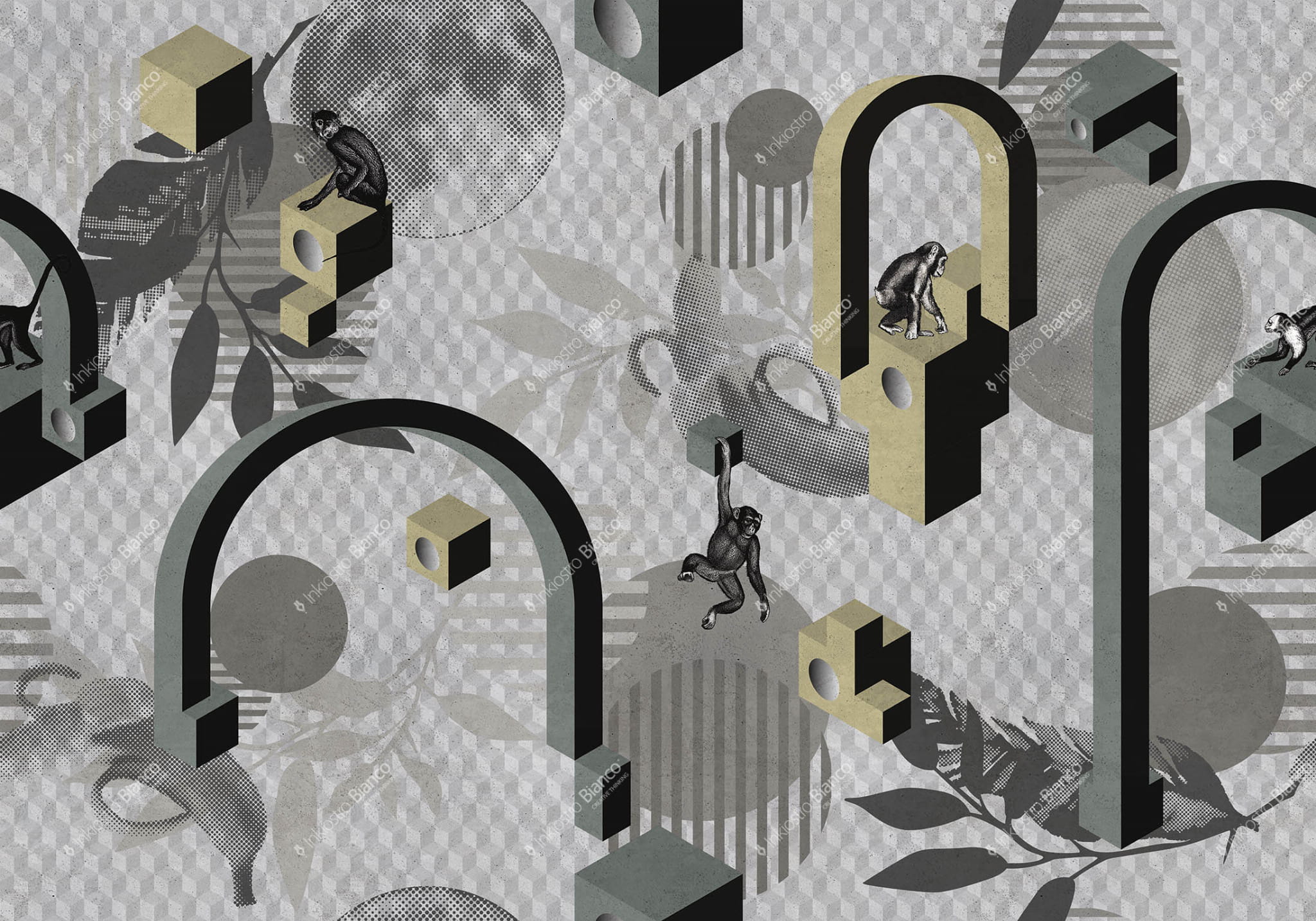 Mural Inkiostro Bianco Natural Beauty Planet Of The Apes INKTNOJ1902 przedstawia ciekawskie małpy, bawiące się pośród rozmaitych figur geometrycznych. To atawistyczny system grafizmów, które można dostrzec w naturalnych elementach, z których wywodzą się bardziej złożone formy i wyrażenia. Mural Inkiostro Bianco Natural Beauty Planet Of The Apes INKTNOJ1902 to piękny sposób na udekorowanie Twojego wnętrza. Wzór doskonale sprawdzi się w każdej aranżacji i sprawi, że miejsce nabierze nowoczesnego, eleganckiego i niepowtarzalnego charakteru. Model dostępny jest w dwóch wersjach kolorystycznych.