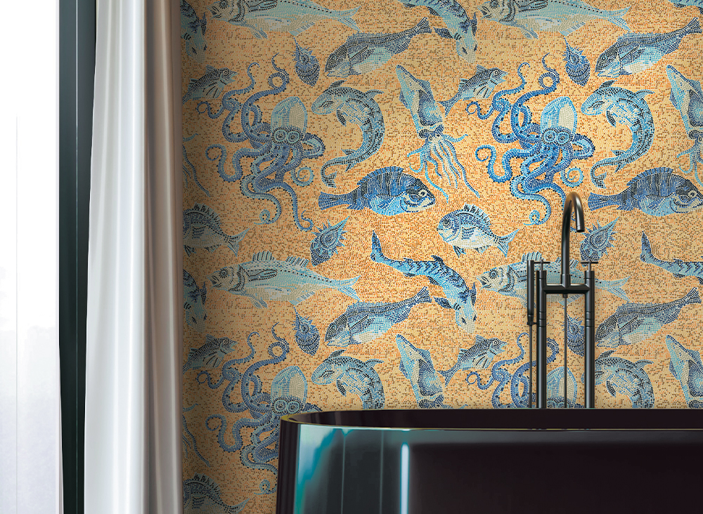 Tapeta J&V 26050 Scalamandre Mikonos to wyjątkowa kompozycja inspirowana żywiołem oceanu, która zachwyca dynamiką i wyrafinowaniem wzoru. Motyw ryb, subtelnie ujęty w formę mozaiki, odzwierciedla płynność morskiego życia, wprowadzając do wnętrza aurę świeżości i naturalnego piękna. Tapeta J&V Scalamandre Mikonos 26050 doskonale sprawdza się zarówno w nowoczesnych łazienkach, nadając im wyjątkowy klimat nadmorskiego spokoju, jak i w przestronnych holach, gdzie staje się oryginalnym akcentem dekoracyjnym. Wykorzystanie połyskliwej farby wzmacnia efekt trójwymiarowości, podkreślając głębię wzoru i wprowadzając efekt migotania pod wpływem zmieniającego się światła. Dzięki temu tapeta zachowuje świeżość wizualną, tworząc dynamiczny i jednocześnie harmonijny wystrój.