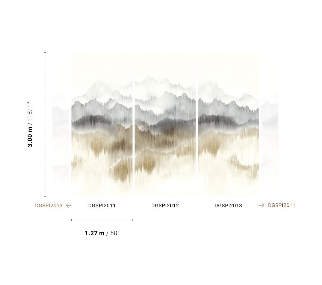 Mural Khroma Spirit of Nature DGSPI2012 Vista Mist to wielkoformatowa dekoracja ścienna o wzorze panoramicznych gór, pierwotnie namalowanych na przędzy tekstylnej, co dało cudowny efekt akwareli. Co więcej nieregularne tło dodaje głębi i wyjątkowego efektu ręcznego rysunku. Cały mural Khroma Spirit of Nature VIsta Mist składa się z trzech oddzielnych paneli - DGSPI2011, DGSPI2012, DGSPI2013, które należy połączyć, aby uzyskać pożądany efekt.