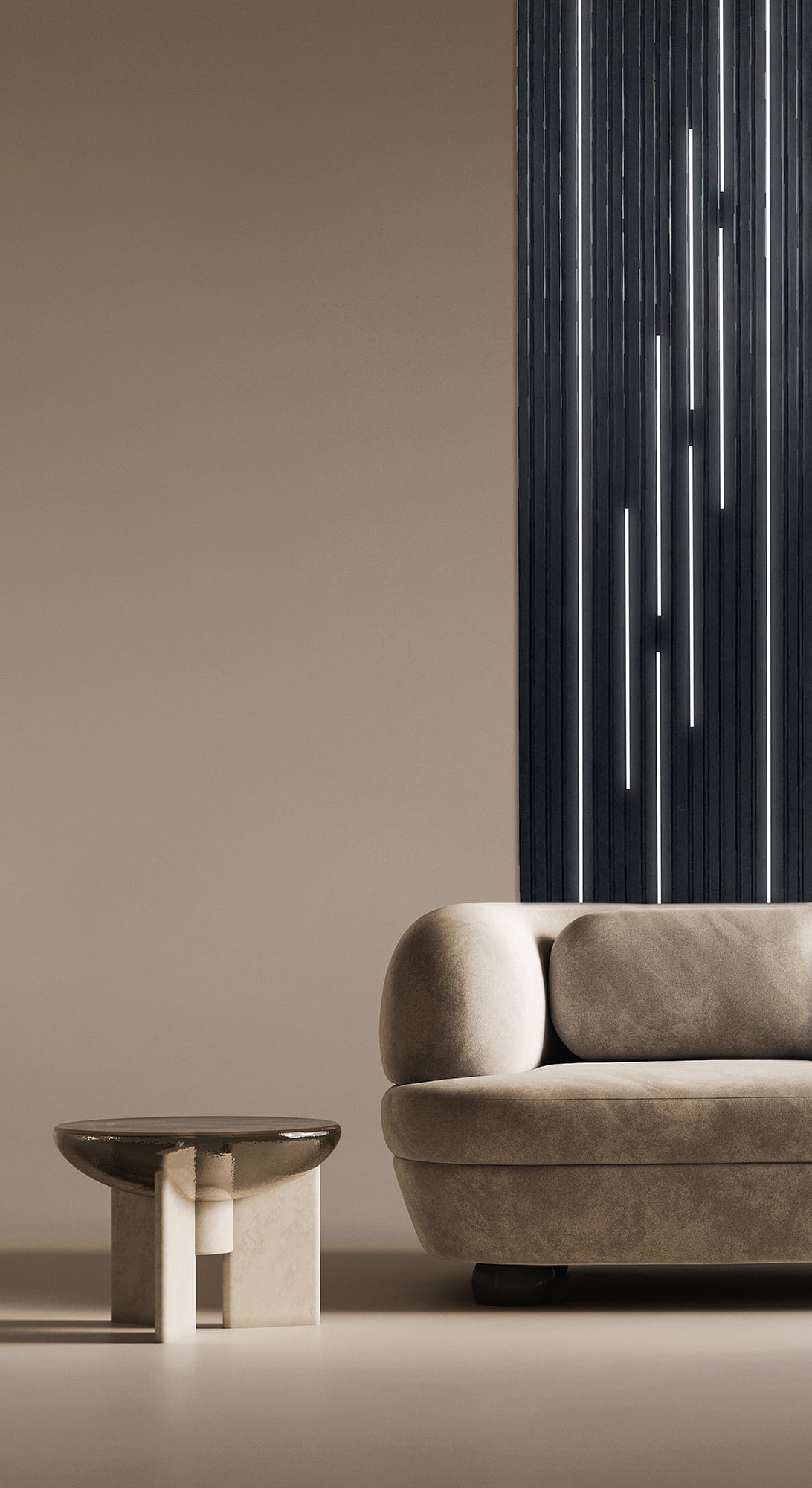 Lamele ścienne ze zintegrowanym oświetleniem otwierają zupełnie nowe możliwości aranżacyjne. Dostępne opcje pozwalają na perfekcyjne dopasowanie intensywności i temperatury światła do nastroju wnętrza. Możliwość przyciemniania przez aplikację TUYA SMART lub pilota oferuje pełną kontrolę nad atmosferą, czyniąc Lamelio Amber rozwiązaniem idealnym zarówno dla przestrzeni domowych, jak i publicznych.