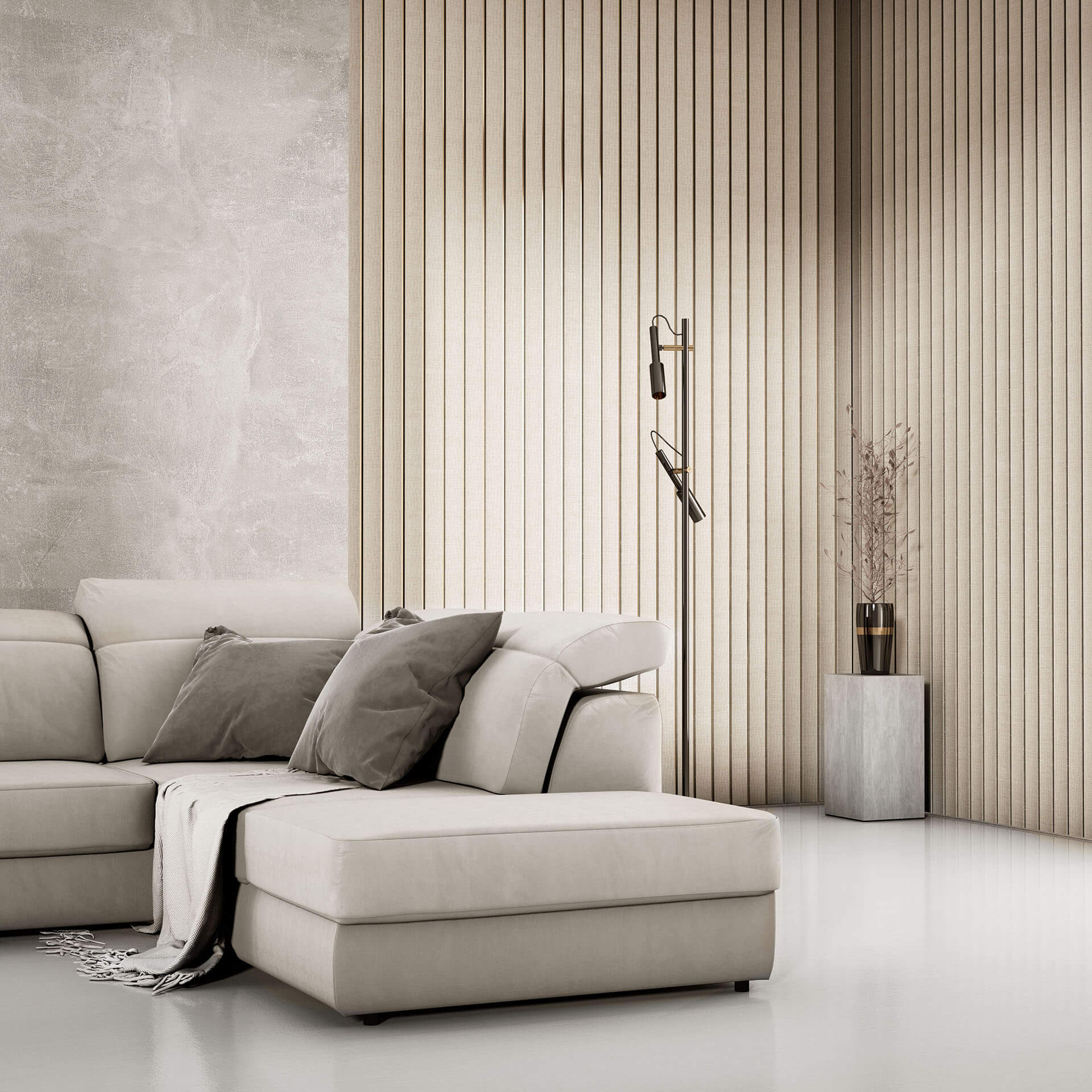 Lamele ścienne Lamelio Amber Beżowy to wykończenia o niebanalnym układzie listew – umieszczonych w formie przypominającej delikatne fale. Produkty idealnie nadają się do pomieszczeń, w których mogą pełnić główną rolę. Lamele ścienne 3D wykonane są z utwardzanego polistyrenu, dzięki czemu są bardzo odporne na uszkodzenia. Materiał ten zapewnia, że ściana z listew może być używana również w wilgotnych pomieszczeniach, np. w kuchniach czy łazienkach.
