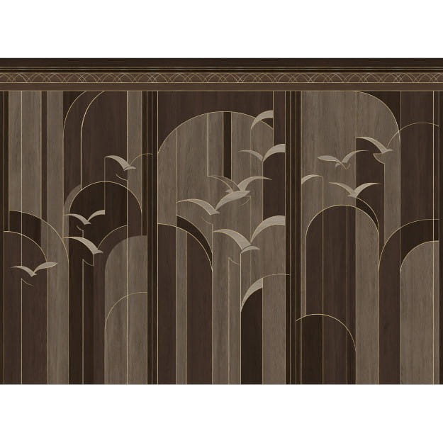 Les Dominotiers DOM4008 Art Deco Garigliano Mineral - mural w ptaki w geometrycznym stylu