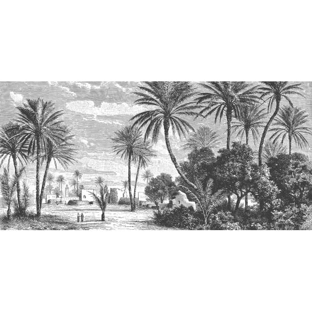Mural Les Dominotiers Volume 2 Oasis DOM_12/3_SM nawiązuje do ryciny autorstwa Charlesa Barbanta. Przedstawia oazę znajdującą się na suchych obszarach Tunezji. Zaprezentowane na tle nieba drzewa mają majestatyczny charakter. Ten egzotyczny, czarno-biały pejzaż otwiera drzwi do orientalnego krajobrazu. Doskonale komponuje się z aranżacjami wnętrz inspirowanymi stylem egzotycznym. Ograniczona paleta barw sprawia, że mural pasuje także do nowoczesnych i minimalistycznych przestrzeni. Dekoracja Les Dominotiers DOM_12/3_SM Volume 2 Oasis dostępna jest w wersji winylowej i flizelinowej, dzięki czemu idealnie dobierzesz jej praktyczne właściwości do własnych potrzeb.