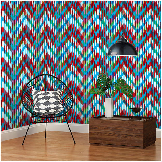 Les Dominotiers DOM_166-1 Sandrine Alouf Ekiti Bleu - mural w kolorowe zygzaki