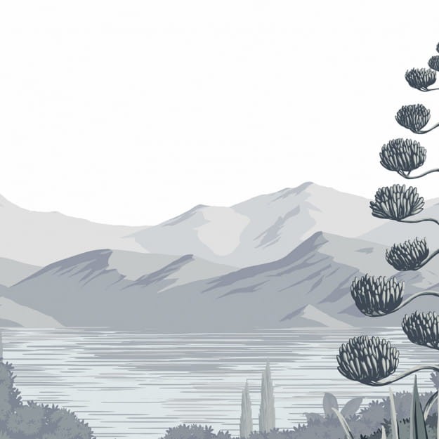 Mural Les Dominotiers Volume 7 Contrees Lointaines Orta Blue Green DOM_517_SM przenosi nas do idyllicznego krajobrazu włoskiego Piemontu, oferując widok na malowniczą wioskę położoną nad jeziorem. Ten mural jest prawdziwym hołdem dla górskiego pejzażu z bogatą, śródziemnomorską roślinnością uchwyconą na pierwszym planie. Dalej, u podnóży góry, roztacza się spokojne jezioro, które dodaje kompozycji głębi. Twórcy muralu czerpali z dawnych technik, dzięki czemu przypomina on stare panele malarskie. Wykorzystana paleta kolorystyczna nadaje dekoracji lekko staroświeckiego charakteru, który jednak znakomicie wpisuje się obecne trendy aranżacyjne. Bez względu na to, czy dekoracja zostanie połączona z ciemnymi, czy jasnymi kolorami, doskonale dopełni wnętrze. Mural Les Dominotiers Enchanted DOM_517_SM Volume 7 Contrees Lointaines Orta Blue Green pasuje do eleganckich, współczesnych przestrzeni, które potrzebują śródziemnomorskiego akcentu. Dostępny jest w wersji winylowej i flizelinowej oraz w innym wariancie kolorystycznym, co otwiera masę możliwości aranżacyjnych.