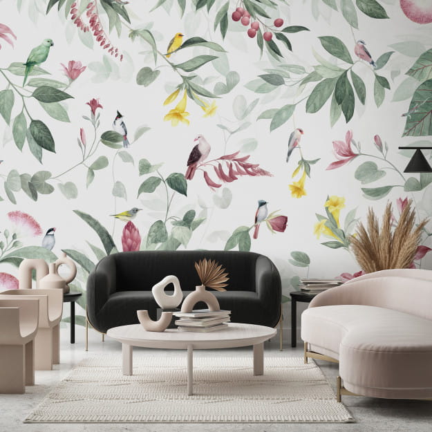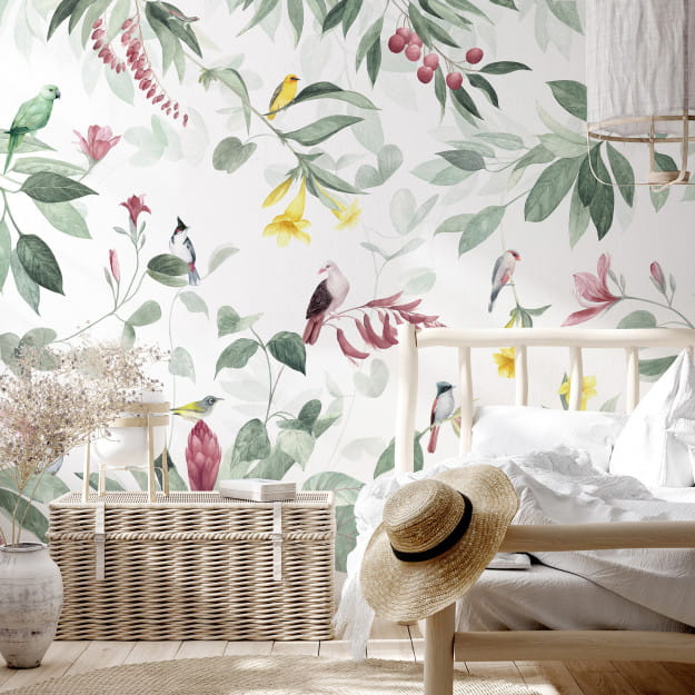 Mural Les Dominotiers Volume 8 Moris Birds Island DOM_618_SM to niepowtarzalna opowieść o tropikalnej wyspie zapełnionej rzadkimi gatunkami roślin i zwierząt. Namalowano ją akwarelą w odcieniach zieleni, różu i słonecznej żółci, dzięki czemu emanuje delikatnością i jasnością, przenosząc nas w krainę egzotycznej przygody. Na muralu można podziwiać różnorodne gatunki ptaków - m.in. kolorowe papugi, różowe gołębie i kardynały. Wspólnie tańczą one wśród bujnej roślinności, m.in. kwitnących orchidei i drzew liczi. Kwiaty Allamanda są jaskrawymi akcentami, które przyciągają wzrok i pobudzając wyobraźnię. Les Dominotiers DOM_618_SM Volume 8 Moris Birds Island to więcej niż tylko mural - to podróż w egzotyczną krainę marzeń. Doskonale sprawdzi się w salonie, sypialni czy pokoju dziecięcym. Świetnie zintegruje się z wnętrzami urządzonymi w stylu eklektycznym i nowoczesnym. Dekoracja występuje w 2 wersjach - flizelinowej i winylowej.