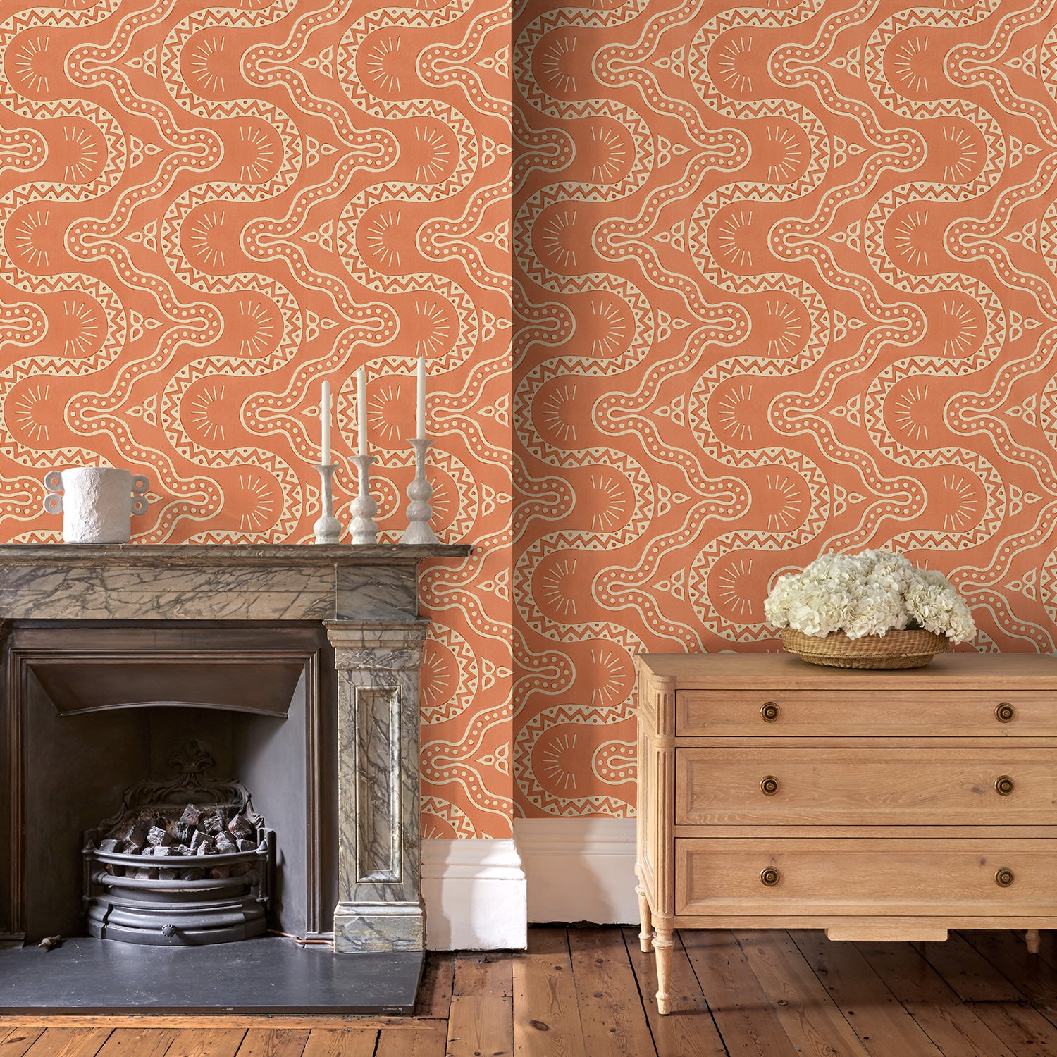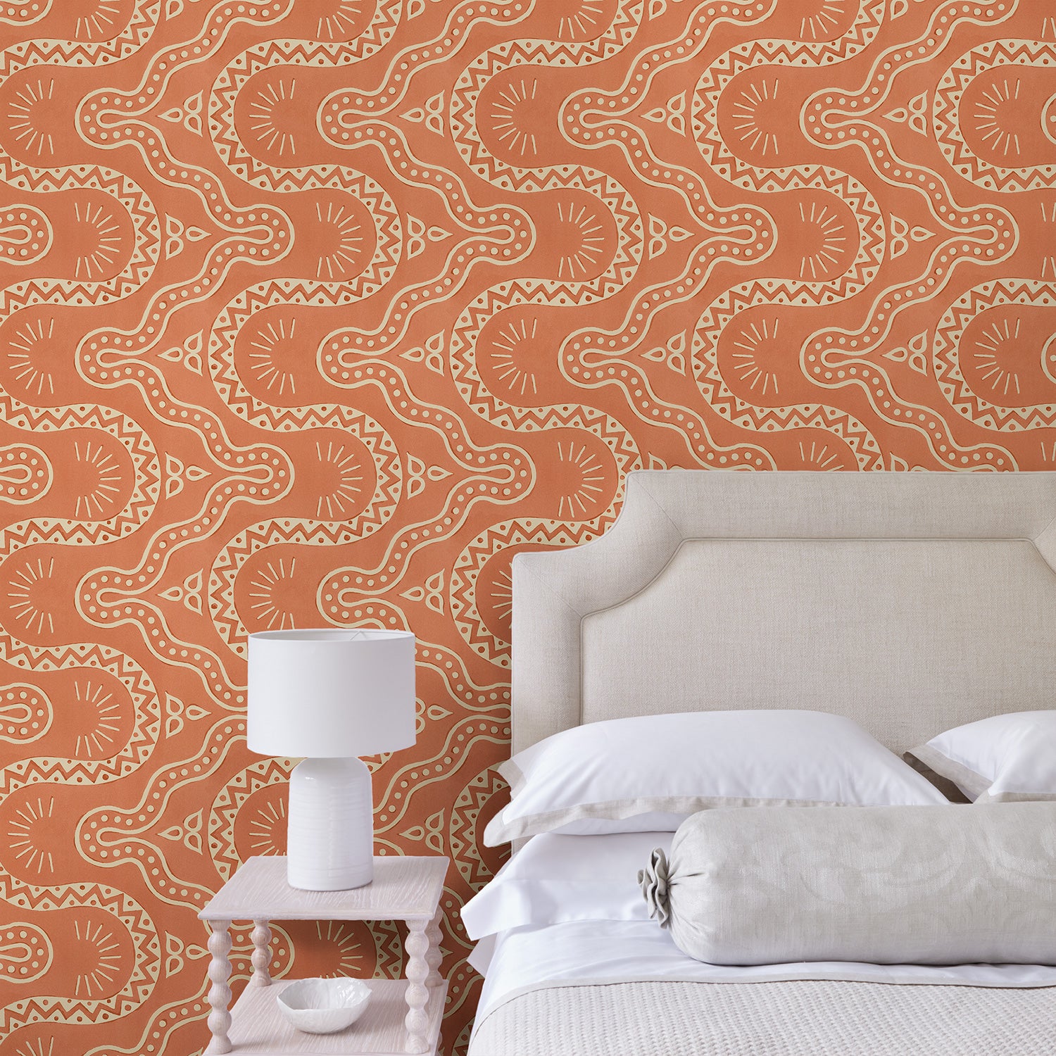 Tapeta Linwood Pinball Papaya LW097/002 prezentuje dynamiczny wzór o miękkiej, płynnej linii, inspirowany detalami architektonicznymi z XIX-wiecznego budynku w Budapeszcie. Ręcznie przetworzony projekt ukazuje motyw fal i rozchodzących się promieni w rytmicznym układzie. Ciepły odcień terakoty w połączeniu z jasnym tłem nada ścianie energii, ale bez dominacji. Stylizowane formy przyciągają uwagę i budują graficzny rytm, który dobrze wpisze się w nowoczesne i eklektyczne wnętrza. Tapeta została wykonana na podkładzie flizelinowym, co ułatwia montaż. Tapeta Linwood LW097/002 Pinball Papaya wprowadzi do aranżacji strukturę, głębię oraz wyrazisty charakter, idealny do odważnych, lecz spójnych kompozycji przestrzennych.