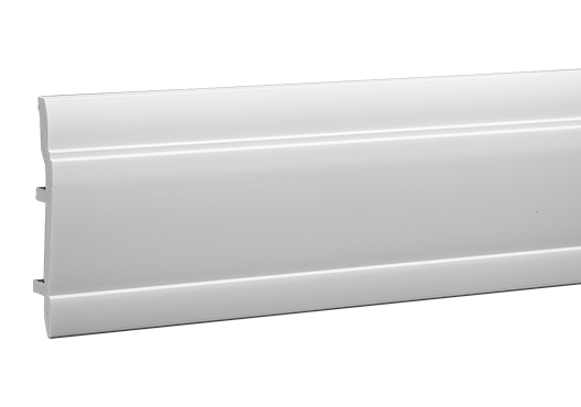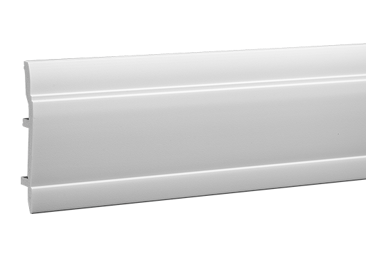 Listwa podłogowa Gaudi 6.53.102 została wykonana z wysokogatunkowego poliuretanu, materiału cenionego w branży wykończeniowej za wytrzymałość i stabilność. Poliuretan charakteryzuje się niskim pochłanianiem wilgoci, odpornością na pęknięcia i mniejszą kurczliwością w porównaniu z drewnem, co zapewnia długotrwałą estetykę. Powierzchnia listwy została pokryta białą farbą podkładową, dzięki czemu element można łatwo pomalować farbą akrylową, lateksową lub inną na bazie wody, dopasowując go do indywidualnej kolorystyki wnętrza. Jej design wpisuje się zarówno w klasyczne, jak i nowoczesne aranżacje.