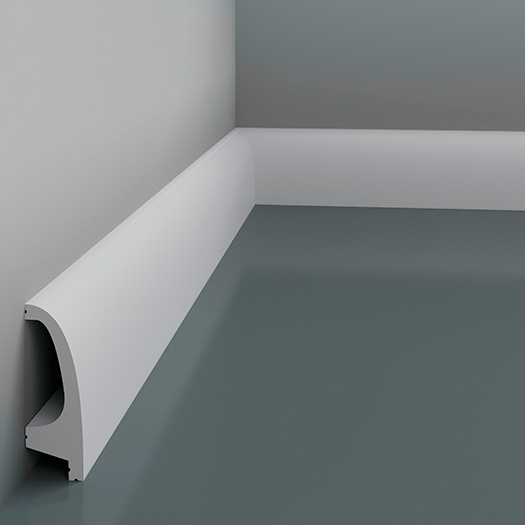 Listwa podłogowa Gaudi 6.53.701 została wykonana z wysokogatunkowego poliuretanu, materiału cenionego w branży wykończeniowej za wytrzymałość i stabilność. Poliuretan charakteryzuje się niskim pochłanianiem wilgoci, odpornością na pęknięcia i mniejszą kurczliwością w porównaniu z drewnem, co zapewnia długotrwałą estetykę. Powierzchnia listwy została pokryta białą farbą podkładową, dzięki czemu element można łatwo pomalować farbą akrylową, lateksową lub inną na bazie wody, dopasowując go do indywidualnej kolorystyki wnętrza. Jej design wpisuje się zarówno w klasyczne, jak i nowoczesne aranżacje.