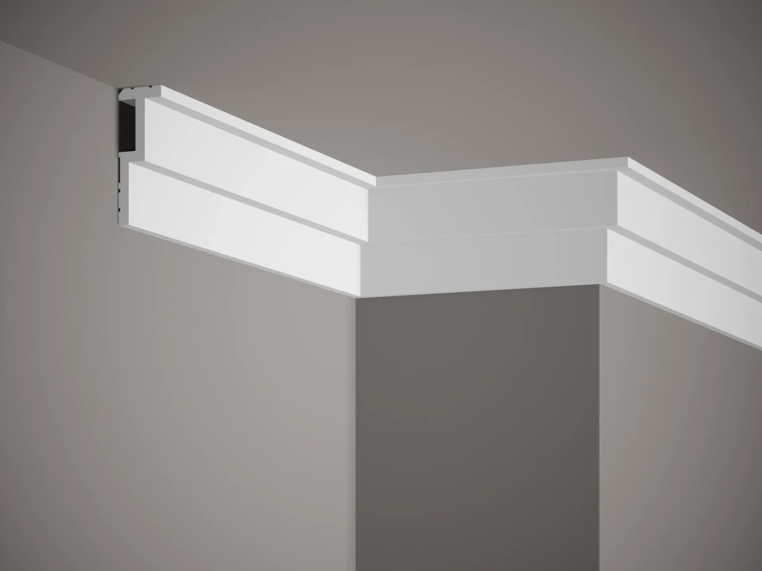 Listwa sufitowa Mardom QL024 to wyraz nowoczesnego podejścia do sztukaterii – architektoniczna w formie, funkcjonalna w detalu, zaprojektowana z myślą o maksymalnej estetyce przy minimalnej ingerencji w strukturę wnętrza. Jej kaskadowa konstrukcja wprowadza wielowarstwowy efekt, który imituje rozbudowaną zabudowę sufitową bez konieczności stosowania płyt gipsowo-kartonowych. Geometria profilu pozwala na tworzenie efektownych kompozycji: zarówno jako listwa karniszowa, dekoracyjna, jak i oświetleniowa.