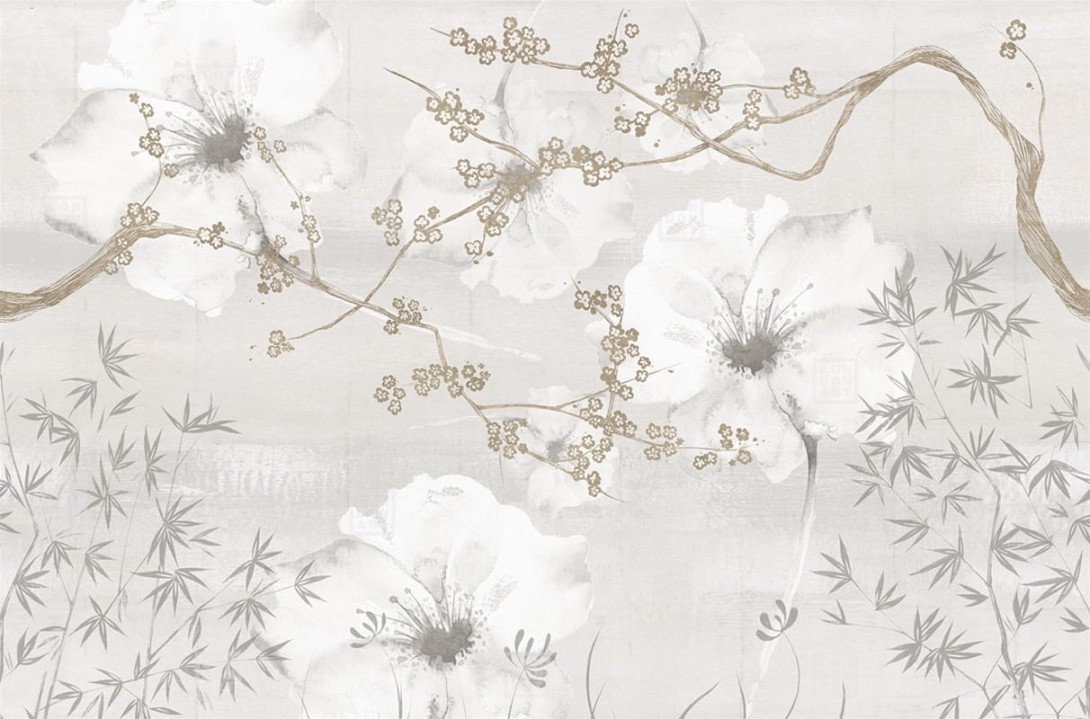 London Art 16079-06 22 Iconic Re-edition Better Days - mural z motywem gałęzi, kwiatów i bambusa