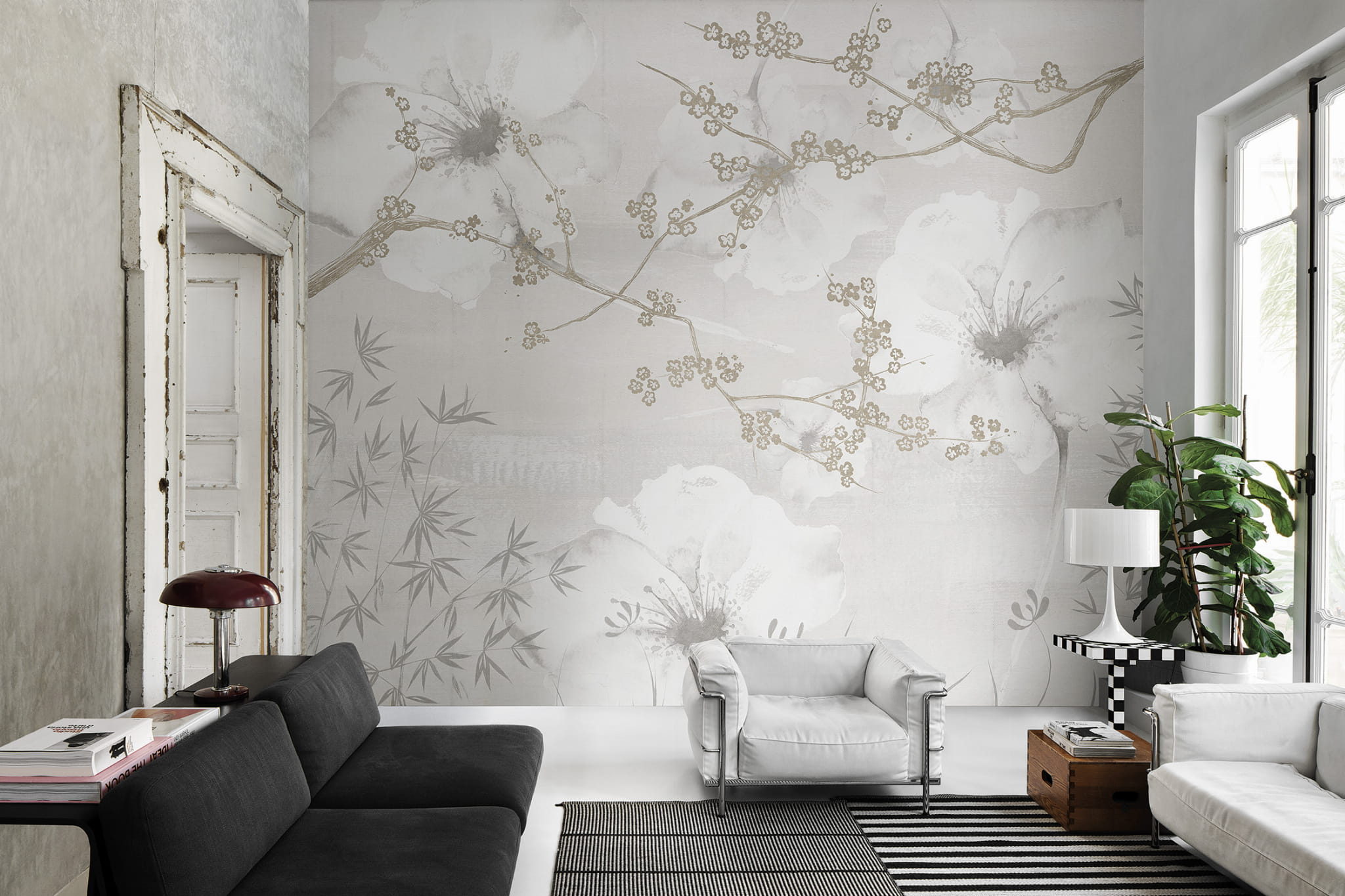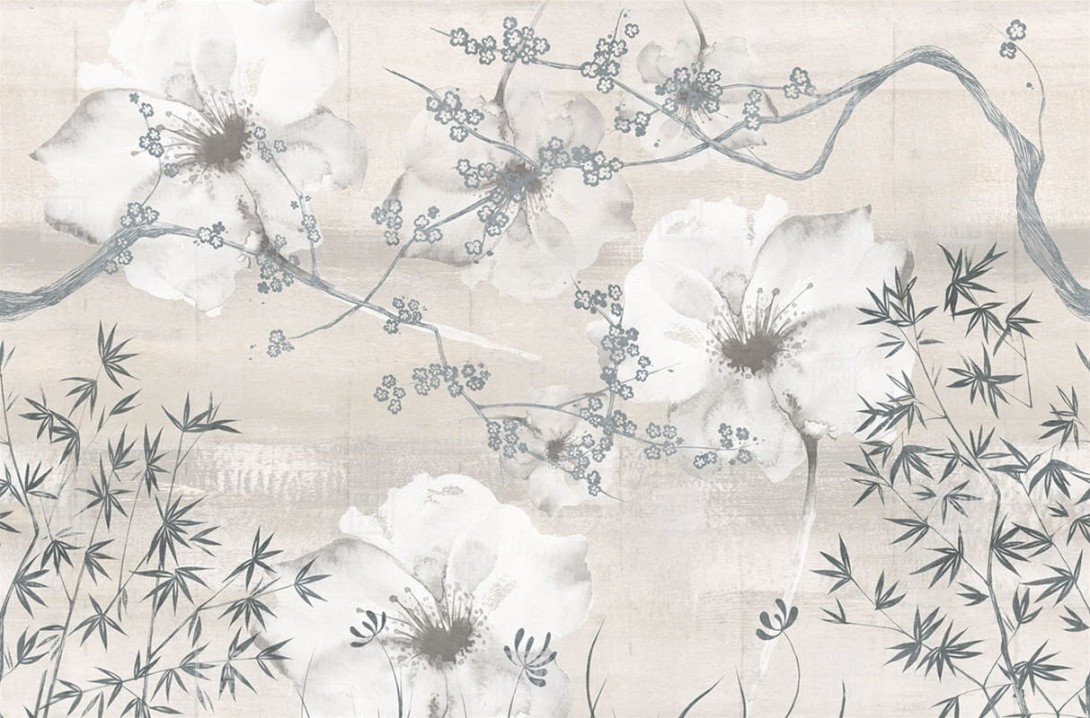 London Art 16079-06 22 Iconic Re-edition Better Days - mural z motywem gałęzi, kwiatów i bambusa