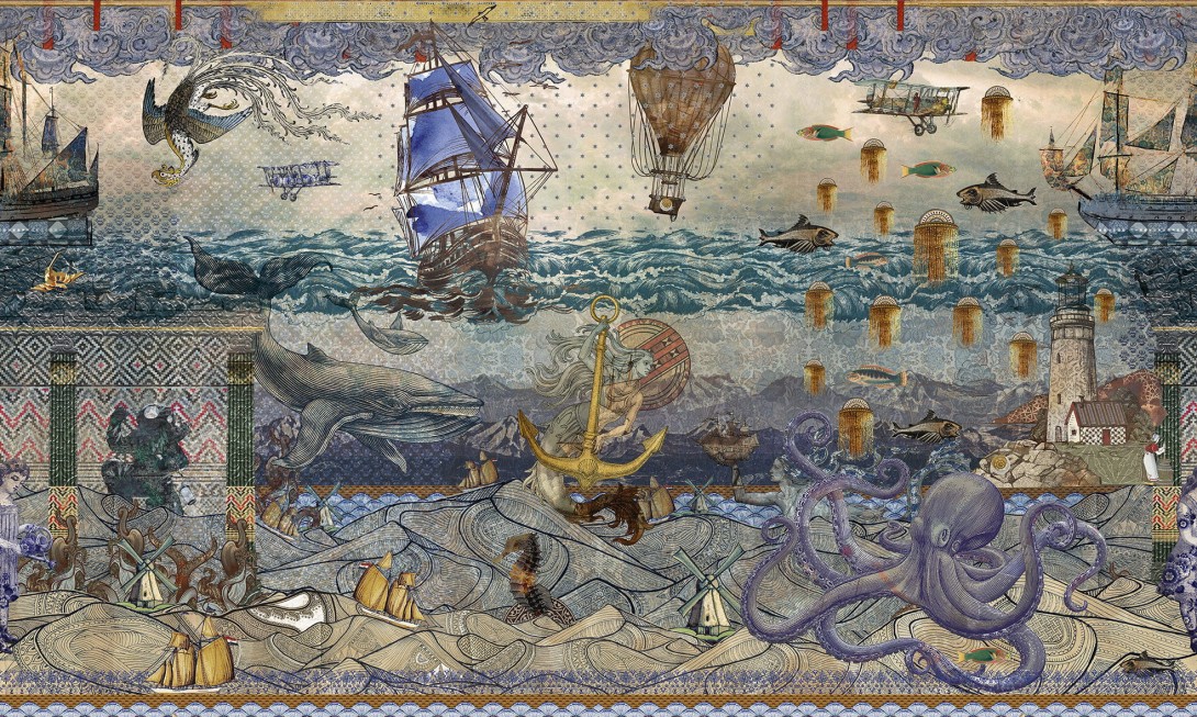 Mural London Art Marcel Wanders Atlantis 16MW to imponująca cena oświetlona światłem słonecznym i smagana wiatrem, skrywająca ciche oceaniczne dno cudów, które schodzi w głębiny. Ta pełna odniesień do kultury holenderskiej praca przypomina morskie obrazy „złotego wieku” i zawiera wizerunki ceramicznych statuetek z Delft, wiatraków i starożytnych galer. W surrealistycznym podwodnym świecie projekt celowo tworzy wizualną głębię, stopniowo ujawniając wspaniałe odniesienia historyczne. Mural London Art Marcel Wanders Atlantis 16MW wprowadzi do pomieszczenia nutkę niepokoju i zdumienia. Sprawdzi się perfekcyjnie we wnętrzach w stylu art-deco, klasycznym, nowoczesnym, minimalistycznym, a nawet eklektycznym.