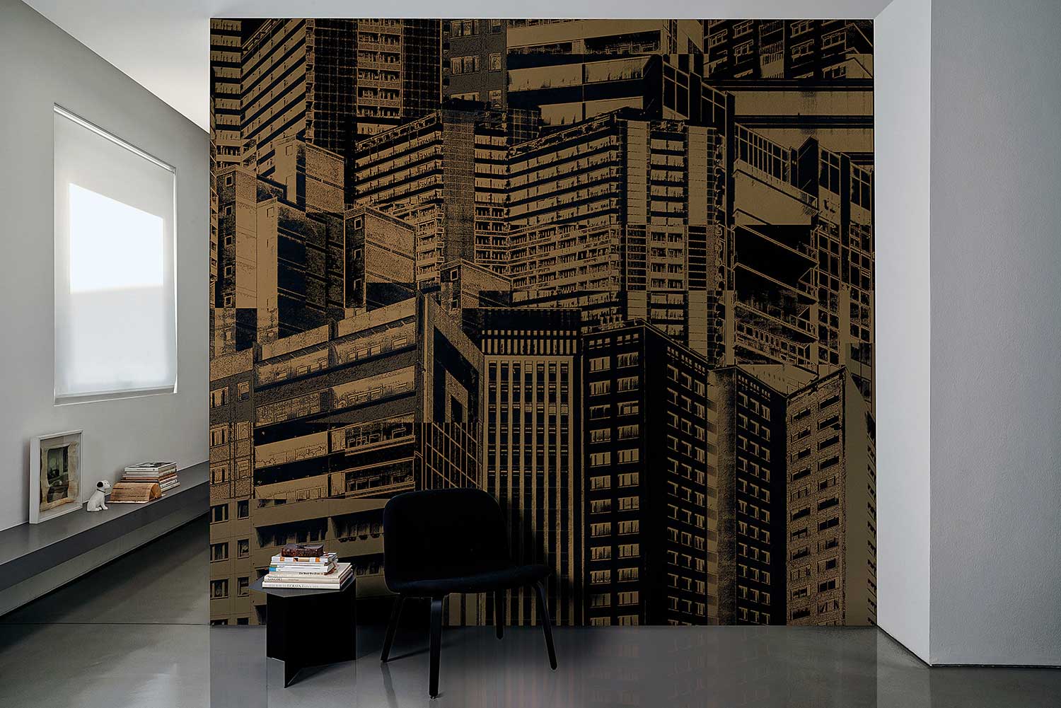 Mural London Art Exclusive 19 19010-02 Utopia to wyimaginowany obraz metropolii, przedstawiający miejski pejzaż składający się z serii drapaczy chmur, budynków wplecionych w przypadkowy krajobraz, w którym okna stają się ozdobą. Niebanalna kompozycja zabiera domowników do miejskiego centrum życia, gdzie czas biegnie zupełnie inaczej. Ta współczesna, bogata i efektowna tapeta nadaje się do wszystkich wnętrz, tworząc w nich nowoczesne i oryginalne aranżacje ścienne. Model doskonale sprawdzi się jako tło dla mebli i dodatków w salonie oraz pokoju młodzieżowym. Mural London Art Exclusive 19 19010-02 Utopia dostępny jest w dwóch wariantach kolorystycznych.