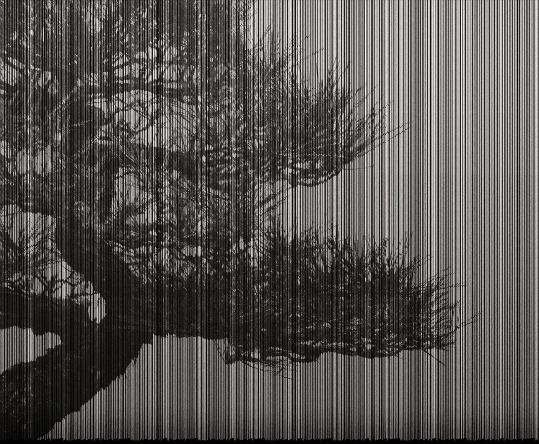Mural London Art Exclusive 20 20016 02 Plague to tajemnicza i niezwykle stylowa dekoracja. Niczym zasłona złożona z setek czarnych sznurków przerywa pionowo sylwetkę drzewa ze skręconym pniem przesiąkniętym historią, które odstaje z jednej strony, opowiadając o odległym i gęstym życiu między wschodem a zachodem. Model w swojej niezwykłej formie opowiada nieskończoną historię, którą każdy może ułożyć na swój sposób. Projekt w doskonały sposób dopełni aranżację w salonie lub jadalni, pełniąc funkcję tła dla mebli i dodatków. Mural London Art Exclusive 20 20016 02 Plague dostępny jest w dwóch wariantach kolorystycznych.