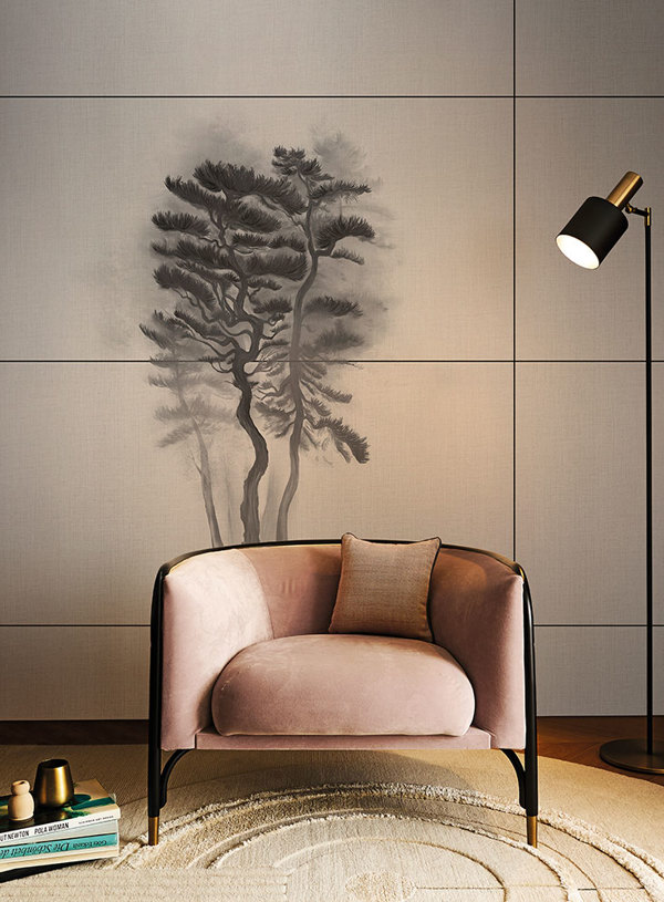 Mural London Art Exclusive Wallpaper 25 Sumie #3 25032 1 to elegancka propozycja dekoracji ściennej, która w subtelny sposób łączy motyw natury z nowoczesnym porządkiem geometrycznym. Delikatnie rozmyte drzewo, namalowane w estetyce japońskiej techniki tuszu, zestawiono tu z wyraźnym podziałem ściany na prostokątne segmenty przypominające siatkę lub kratkę. Taka kompozycja wnosi do wnętrza harmonię oraz nutę orientalnej sztuki w minimalistycznym wydaniu. Mural London Art 25032 1 Exclusive Wallpaper 25 Sumie #3 idealnie dopełni sypialnię, salon lub przestrzeń biurową, nadając pomieszczeniu wyciszającego, ale i wyrafinowanego charakteru.