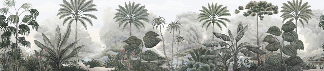 Mural London Art Bon Voyage L'Âme Amazonienne BNV03 B przedstawia bujny, tropikalny las otulony delikatną mgłą. Rozłożyste liście bananowców i smukłe sylwetki palm tworzą kojącą scenerię, która wniesie do wnętrza harmonię i spokój. Stonowane odcienie zieleni i szarości nadają dekoracji naturalnego, eleganckiego charakteru. Dzięki warstwowej kompozycji wzór optycznie powiększy przestrzeń. Mural London Art BNV03 B Bon Voyage L'Âme Amazonienne doskonale sprawdzi się w salonie, jadalni, gabinecie lub bibliotece - wprowadzi do nich atmosferę sprzyjającą relaksowi i wyciszeniu. Dobrze komponuje się z drewnem, kamieniem i lnianymi tkaninami, które podkreślą naturalny styl wnętrza.