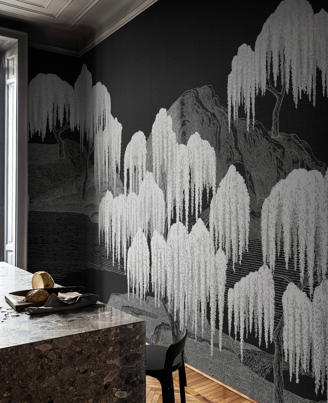 London Art MUN08 D Les Mille Et Une Nuits Saules Et Montagnes - mural japoński krajobraz z jeziorem