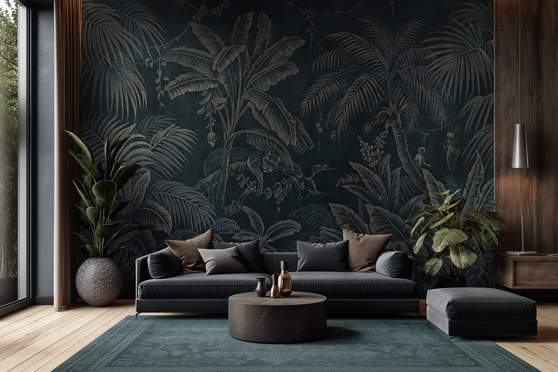 Mural Lorenso Prida TPA 0224 0067 01 wniesie do wnętrza klimat tropikalnej dżungli. Na głębokim tle widnieją misterne szkice egzotycznych drzew, krzewów i dzikich zwierząt. Dzięki wyważonej kolorystyce dekoracja doskonale komponuje się zarówno z eleganckimi, klasycznymi aranżacjami, jak i bardziej nowoczesnymi przestrzeniami. Mural wykonany jest z winylu na flizelinie, dlatego jest nie tylko estetyczny, ale i odporny na uszkodzenia i łatwy w montażu. W dodatku jego powierzchnia jest przystosowana do delikatnego czyszczenia lekko zwilżoną szmatką w razie zabrudzeń. Model Prida idealnie sprawdzi się w salonie, sypialni, biurze czy jadalni. Dostępność trzech wariantów kolorystycznych otwiera masę możliwości aranżacyjnych. Mural Lorenso TPA 0224 0067 01 Prida do każdego pomieszczenia wprowadzi unikalną atmosferę inspirowaną naturą i egzotycznymi krajobrazami.