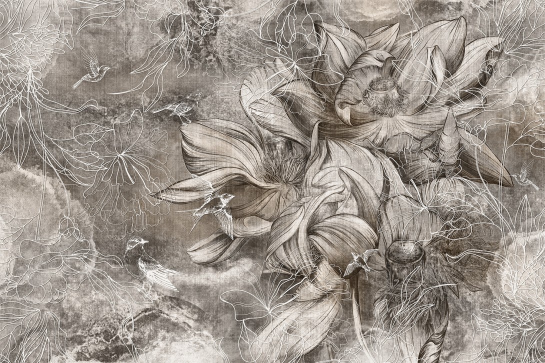 Lorenso TPA 0224 0068 02 Frevial - mural w szkice kwiatów i ptaków