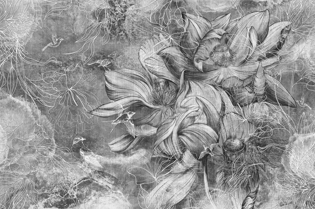 Lorenso TPA 0224 0068 01 Frevial - mural w szkice kwiatów i ptaków