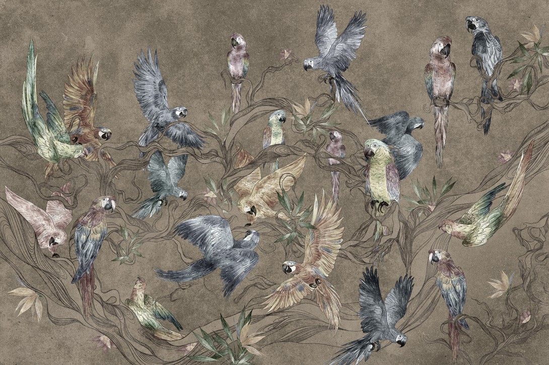 Lorenso TPA 0525 0165 04 Parrot - mural w papugi i liście