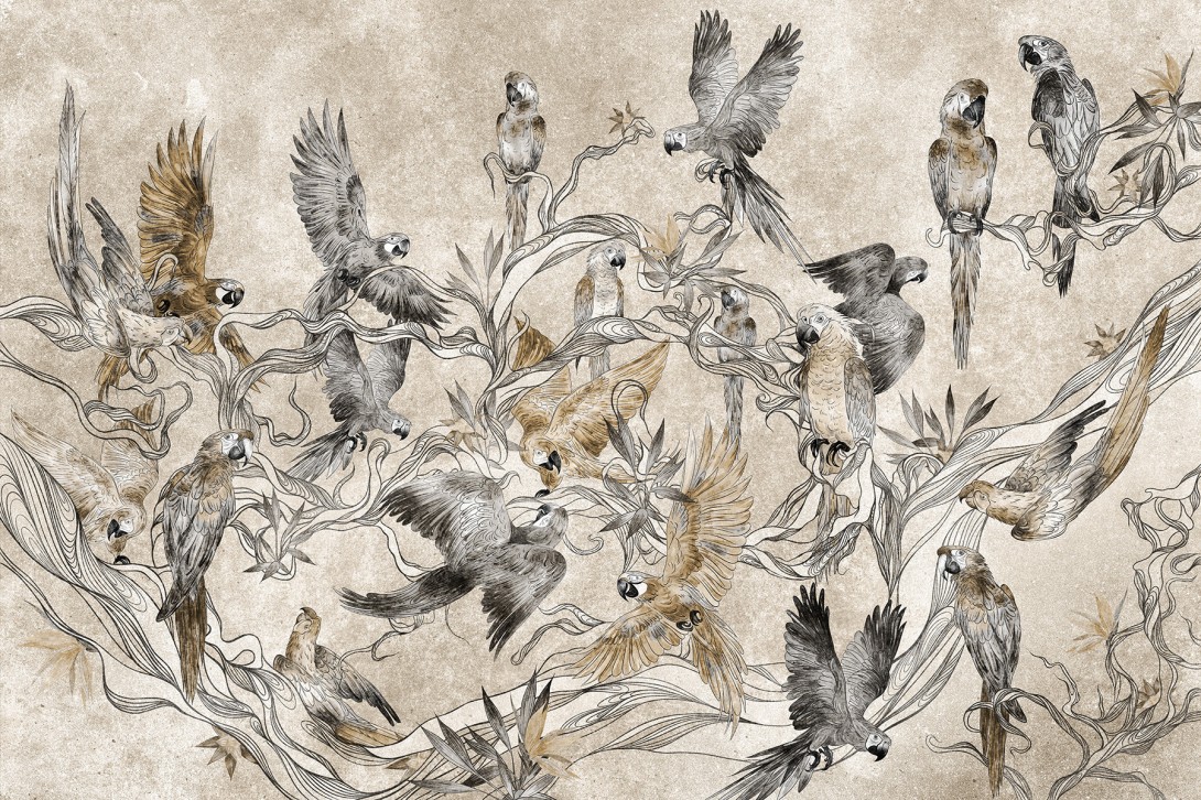 Mural Lorenso Parrot TPA 0525 0165 02 przedstawia kompozycję z egzotycznymi papugami w otoczeniu liści i delikatnych gałęzi. Motyw łączy dynamiczne ułożenie ptaków z precyzyjnie zarysowaną roślinnością, tworząc wyrazisty, a jednocześnie elegancki wzór. Szczegóły sylwetek podkreślają naturalny charakter dekoracji, a całość wprowadza do wnętrza lekkość i przestrzeń. Mural Lorenso TPA 0525 0165 02 Parrot doskonale uzupełnia aranżacje nowoczesne, eklektyczne i klasyczne, nadając ścianie unikalnego akcentu inspirowanego naturą. To wzór, który przyciąga wzrok, ale nie przytłacza, podkreślając charakter wnętrza.